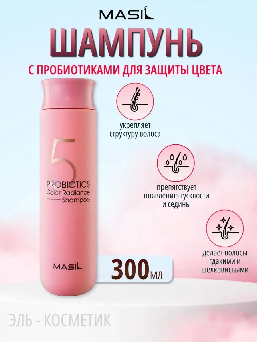 Шампунь MASIL для волос с пробиотиками для защиты цвета 300 мл . Серия шампуней для волос Masil - это Профессиональная оригинальная корейская косметика для волос с разным направленным и действием. КОМПОНЕНТЫ ПРОБИОТИКА Растительные экстракты Сияние. глубоко питают и смягчают волосы. облегчают расчесывание, придают гладкость и блеск .Масло рисовых отрубей сохраняет стойкость цвета. избавляя кожу головы от сухости или чрезмерной жирности , Фермент лактобактерий устраняет зуд и неприятное ощущение на коже головы , POLYQUATERNIUM-10 снимает электризуемость. облегчает расчесывание, придаёт объём После применения корейского шампуня волосы становятся сильными, шелковистыми и приобретают здоровый блеск. Шампунь женский укрепляющий дарит ощущение чистоты и свежести и возвращает волосам мягкость, гладкость и придает им ухоженный вид. Шампунь Масил для волос Профессиональный справляется с самыми разными проблемами, это профессиональные шампуни для волос бессульфатные и подходят для волос с кератином. Шампунь с пробиотиками для защиты цвета возвращает локонам здоровый цвет, препятствует появлению тусклости и седины, защищает от агрессивного воздействия ультрафиолета. Бережно очищает, укрепляет корни волос, делает пряди более гладкими и шелковистыми. Содержит лактобактерии. Корейский шампунь для женщин и для мужчин !