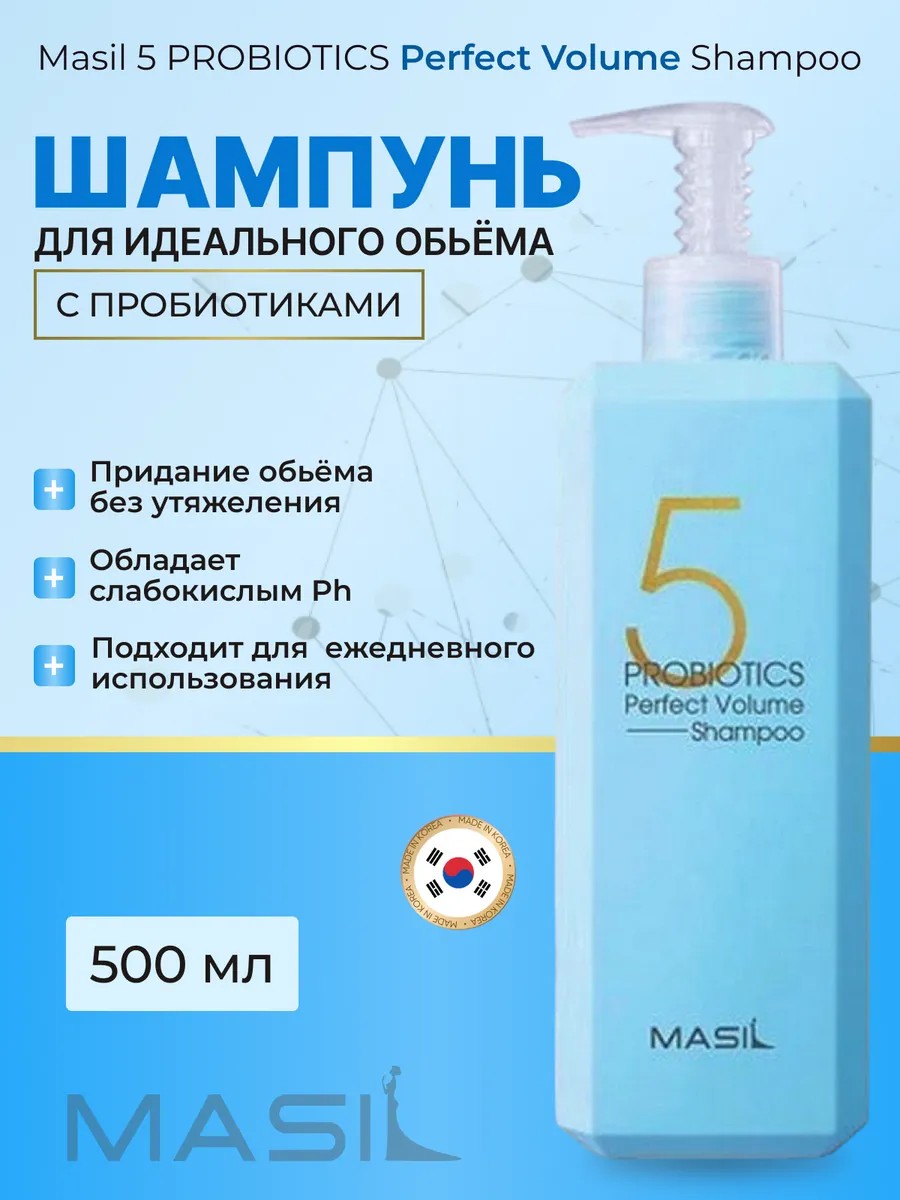 Корейский женский шампунь для салонного ухода Masil 5 Probiotics Perfect Volume Shampoo в выгодном объеме 500 мл – это бессульфатный шампунь, который эффективно укрепляет тонкие и ослабленные волосы, придает им силу и прикорневой объем, питает поврежденные волосы до самых кончиков.