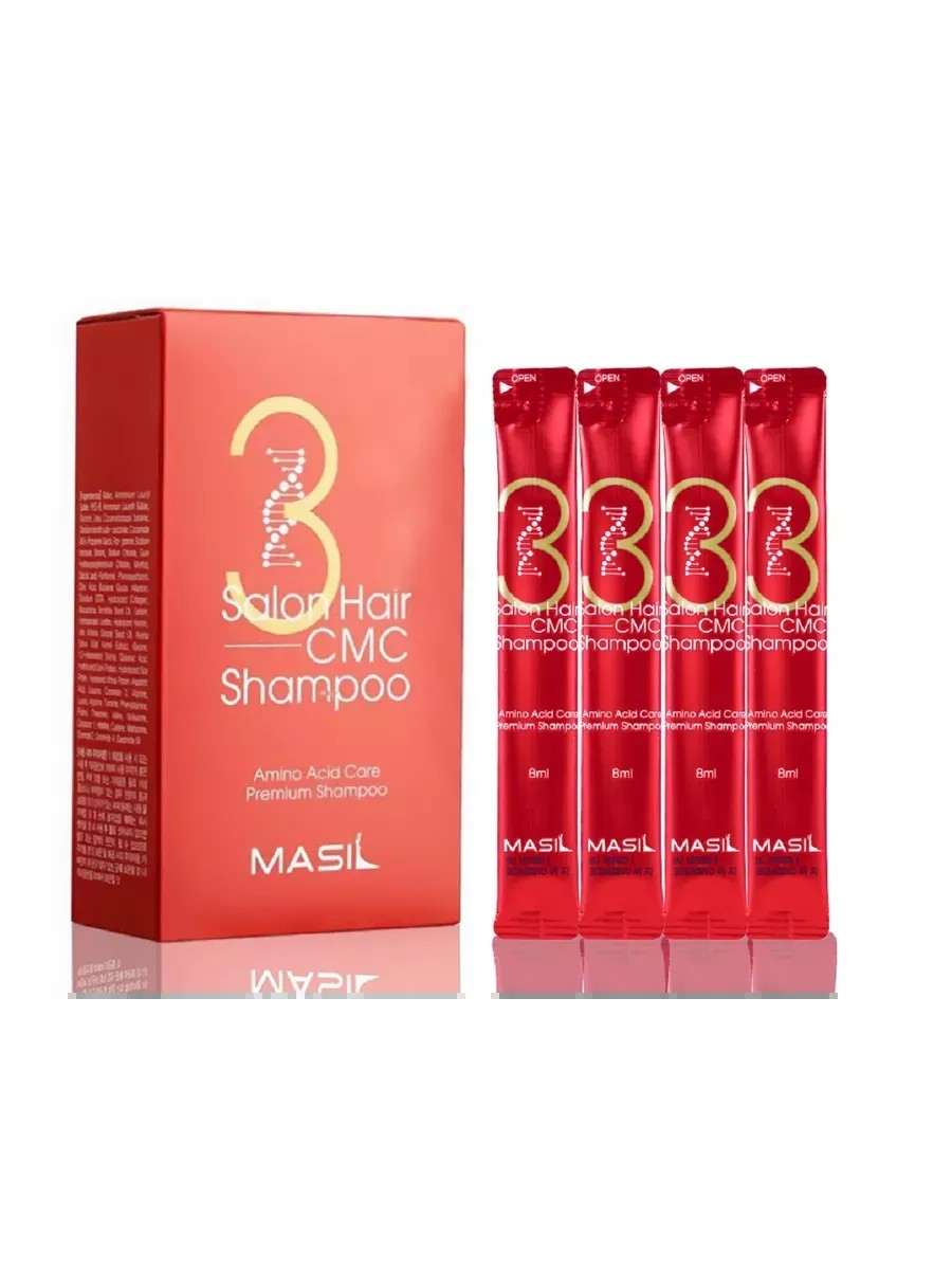 Восстанавливающий профессиональный шампунь с церамидами Masil 3 Salon Hair CMC Shampoo бережно очищает волосы от любых загрязнений, не вызывает раздражения и зуда, способствует разглаживанию волос и предотвращает ломкость.