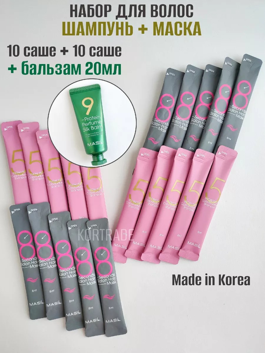 Представляем Вам полноценный дорожный набор по уходу за волосами от корейского бренда Masil, который включает в себя шампунь для волос, маску для волос и несмываемый бальзам для волос!