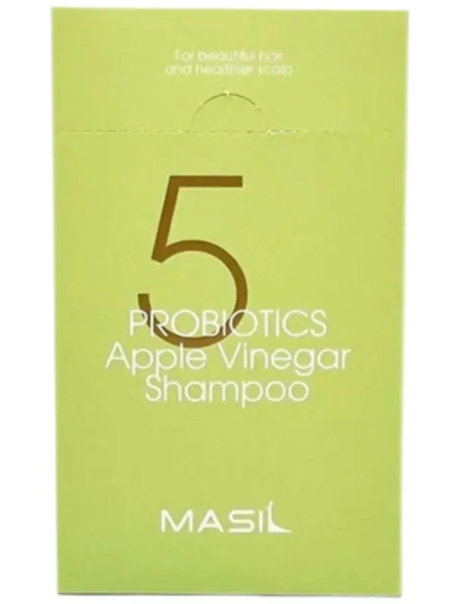 MASIL Shampoo Set 5 PROBIOTICS APPLE VINEGAR SHAMPOO STICK POUCH 8ml x 20 pcs. This gentle, sulfate-free shampoo with apple cider vinegar is recommended for sensitive scalps that react to over-cleansing with dryness, dandruff, itching, and loss of shine. Enriched with apple cider vinegar, its acidic formula seals keratin scales and smoothes hair, adds shine, and cares for the scalp. This shampoo is formulated with mild surfactants. They effectively remove everyday impurities without irritating the scalp. Directions: Apply shampoo to damp, clean hair and scalp, gently massage for 2-3 minutes, and rinse thoroughly with warm water.