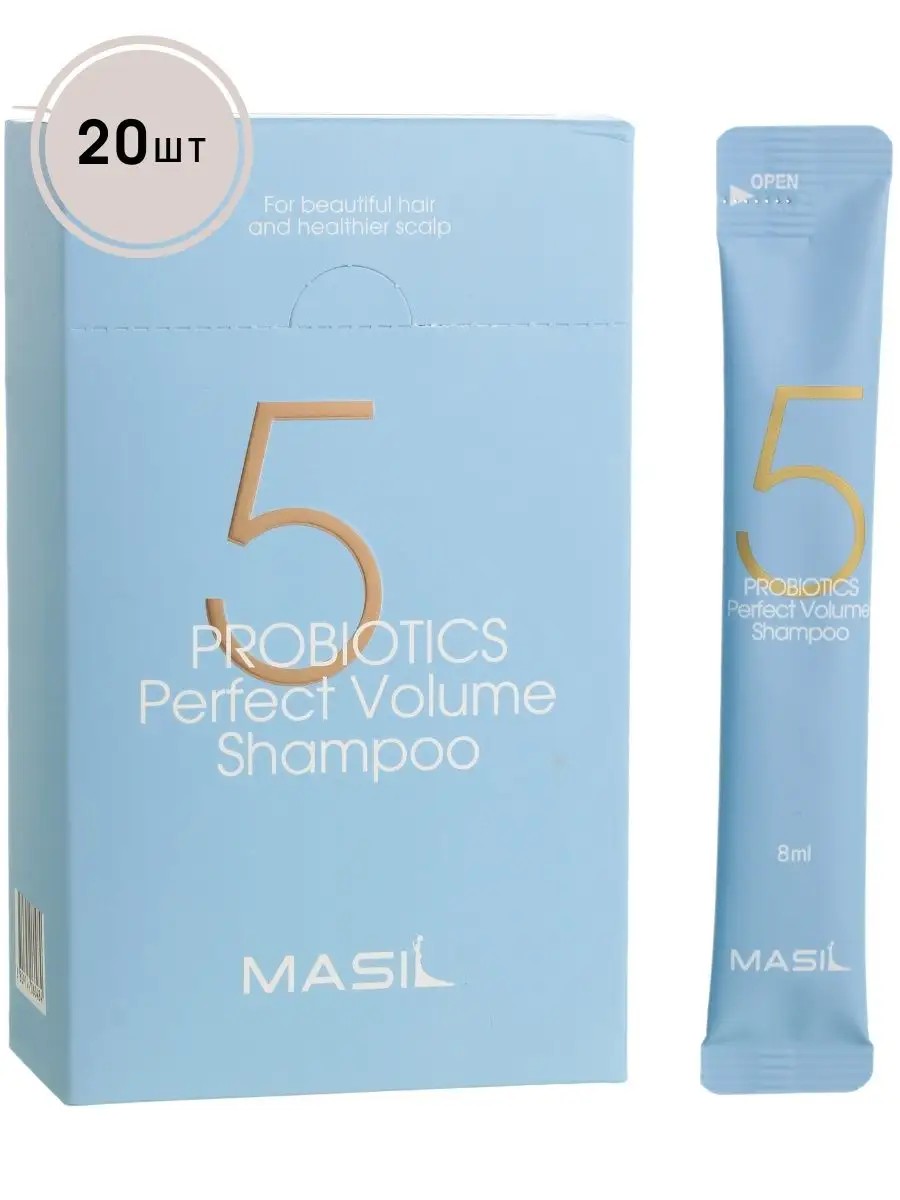 MASIL 5 Probiotics Perfect Volume Shampoo Stick Pouch Шампунь с пятью видами пробиотиков // Шампунь для волос с пятью видами пробиотиков MASIL 5 Probiotics Perfect Volume Shampoo глубоко очищает кожу головы от загрязнений и остатков стайлинговых средств, укрепляет волосы у самых корней, освежает и оздоравливает кожу головы, придаёт блеск и ухоженный вид, а плотная пена хорошо промывает длину, придавая воздушный объем и делая структуру локонов легкой и шелковистой. Экстракт гамамелиса в составе помогает шампуню регулировать выработку себума, а значит - голова будет дольше оставаться чистой, свежей и без жирного блеска. **Способ применения: Нанесите шампунь на влажные волосы и кожу головы, мягко помассируйте 2-3 минуты и тщательно смойте теплой водой.