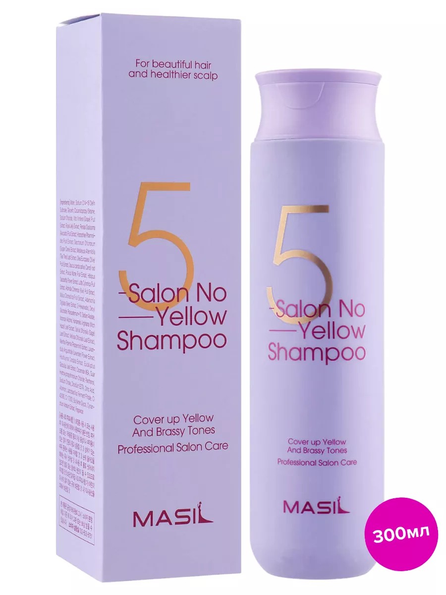 Masil 5 Salon No Yellow Shampoo is a Korean shampoo that works against yellowness of hair. It has a toning effect. It prevents the appearance of yellowness and pigment leaching, helping to preserve the original shade after coloring. It makes hair smooth and manageable, minimizes breakage, makes combing easier, and adds beautiful shine. Korean hair care from the Masil brand thoroughly cleanses, removing any impurities, refreshes, and provides maximum comfort. It helps strengthen the roots and increases natural protection. Provides hydration and nutrition, as well as long-lasting root volume. Strengthens the hair structure, smoothing the keratin layer. The shampoo has a purple hue and a thick, gel texture. It does not stain the skin and leaves no residue. pH level 5.0-6.0. This shampoo is suitable for those with an oily scalp. The composition is silicone-free and sulfate-free.