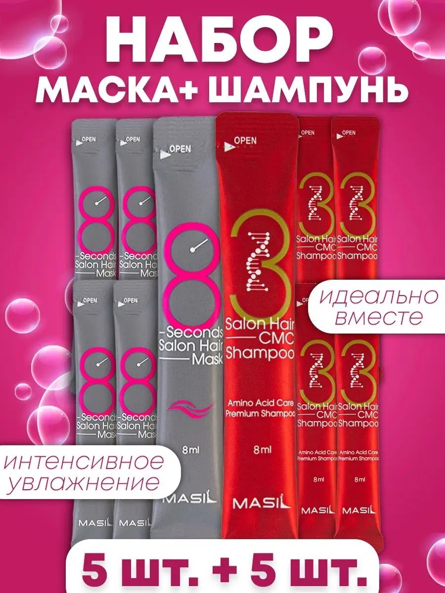 Набор из 2-х топовых продуктов MASIL: профессиональный шампунь + маска филлер для волос 8 секунд. Идеальный уход для окрашенных, сухих и поврежденных. Дорожный набор мини средств удобно взять с собой в дорогу, на отдых, в путешествия, а также в качестве пробника нового продукта.