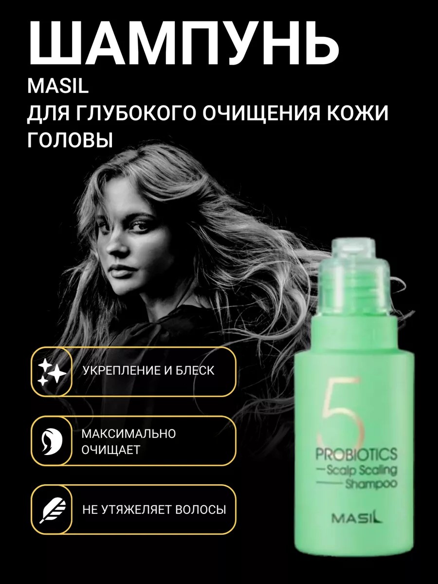 MASIL 5 PROBIOTICS SCALP SCALING SHAMPOO Шампунь для глубокого очищения кожи головы 50мл. Корейский Шампунь для глубокого очищения кожи головы MASIL – идеальное средство для тех, кто ищет надежное и эффективное решение проблемы загрязнения кожи головы. Этот шампунь разработан специально для того, чтобы обеспечить глубокое очищение и максимальный комфорт во время использования.