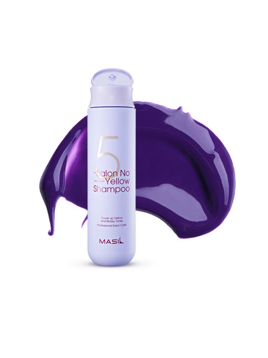 Korean Masil 5 Salon No Yellow Shampoo prevents yellowing and pigment fading, preserving and maintaining the color of color-treated hair. This shampoo makes hair smoother and more manageable, eliminates breakage and frizz, and restores healthy shine. Contains a complex of 14 plant extracts and allantoin.