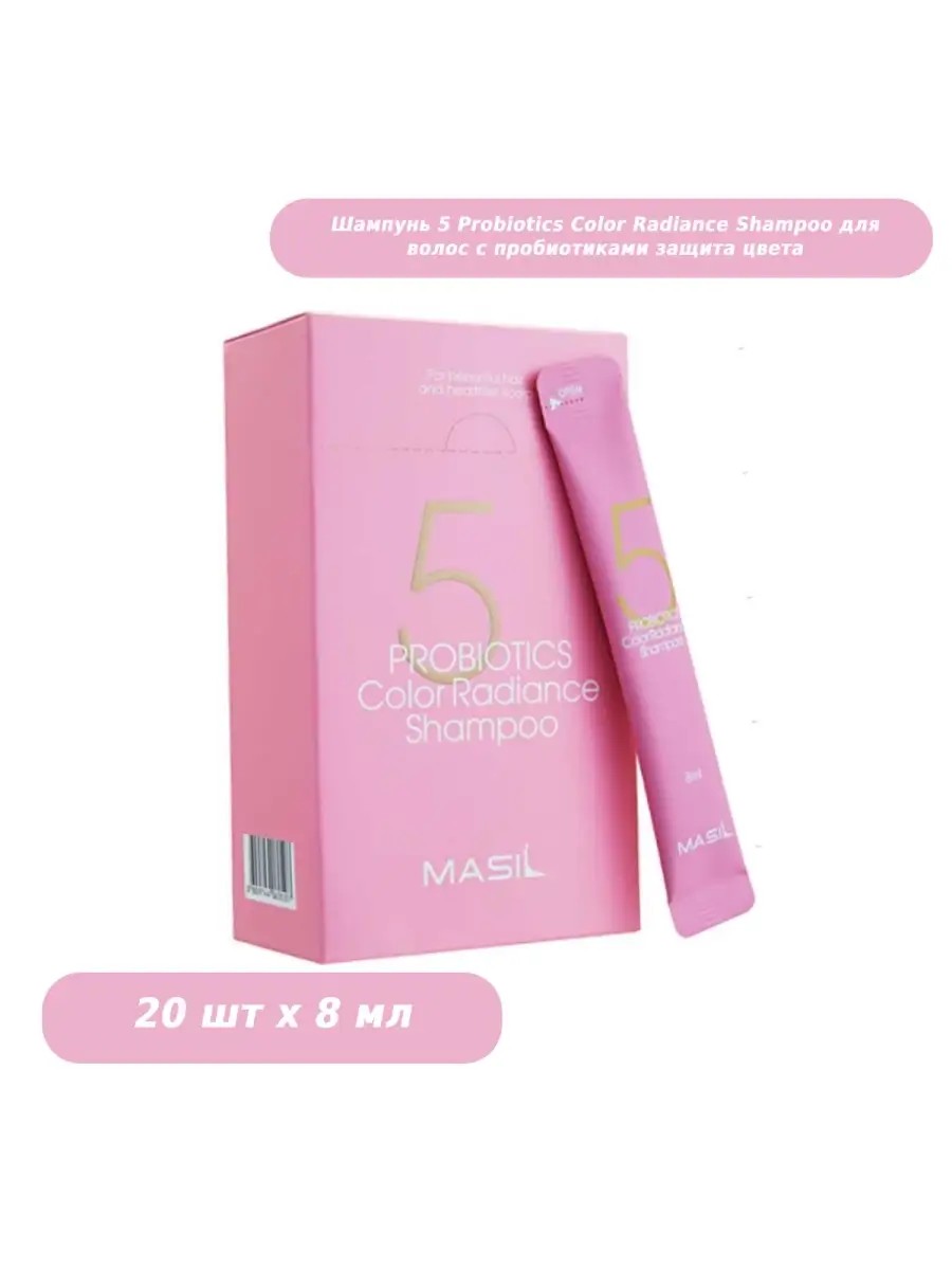 Masil 5 Probiotics Color Radiance Shampoo is a color-protecting shampoo with probiotics. This shampoo restores healthy color, prevents dullness and graying, and protects against the harsh effects of UV rays. Gently cleanses, strengthens hair roots, makes strands smoother and silkier. Ingredients: Water, Sodium C14-16 Olefin Sulfonate, Cocamidopropyl Betaine, Glycerin, PEG-60 Hydrogenated Castor Oil, Fragrance, Sodium Chloride, Polyquaternium-10, 1,2-Hexanediol, Cocamide MEA, Decyl Glucoside, Oryza Sativa (Rice) Bran Oil, Sodium Citrate, Disodium EDTA, Citric Acid, Allantoin, Phenoxyethanol, Guar Hydroxypropyltrimonium Chloride, Vitis Vinifera (Grape) Fruit Extract, Royal Jelly Extract, Persea Gratissima (Avocado) Fruit Extract, Hippophae Rhamnoides Fruit Extract, Saccharum Officinarum (Sugar Cane) Extract, Melaleuca Alternifolia (Tea Tree) Leaf Extract, Olea Europaea (Olive) Fruit Extract, Daucus carota sativa (Carrot) root Extract.