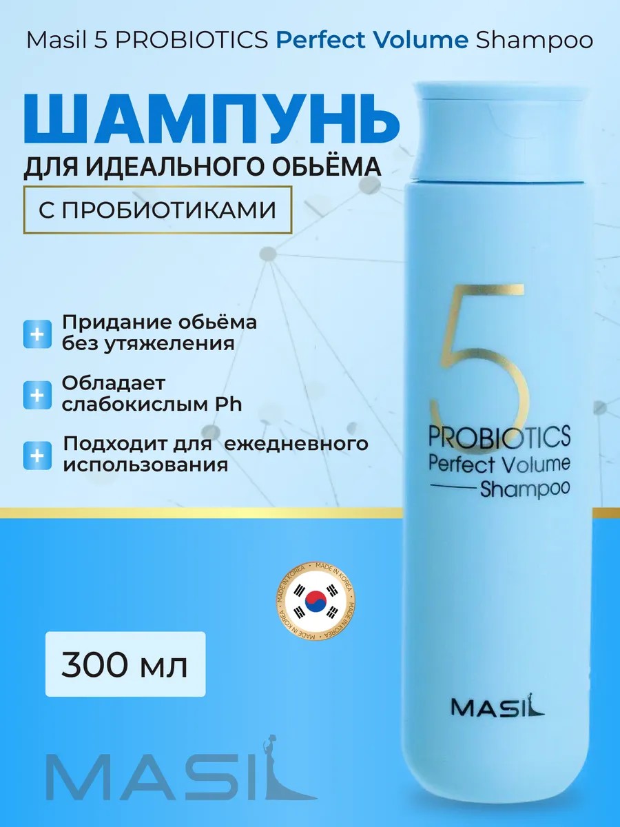 Профессиональный корейский шампунь для объема волос Masil 5 Probiotics Perfect Volume Shampoo - эффективно питает волосы, придает им силу и прикорневой объем, который также восстанавливает повреждённые волосы до самых кончиков.