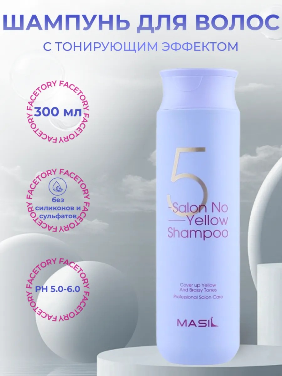 Тонирующий шампунь для осветленных волос Masil 5 Salon No Yellow Shampoo — это профессиональное средство для ухода за окрашенными волосами. Шампунь помогает нейтрализовать желтизну и придать волосам красивый оттенок.