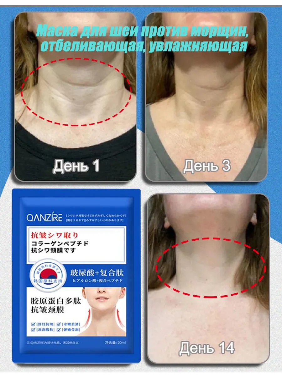 Маска для шеи против морщин, отбеливающая, увлажняющая