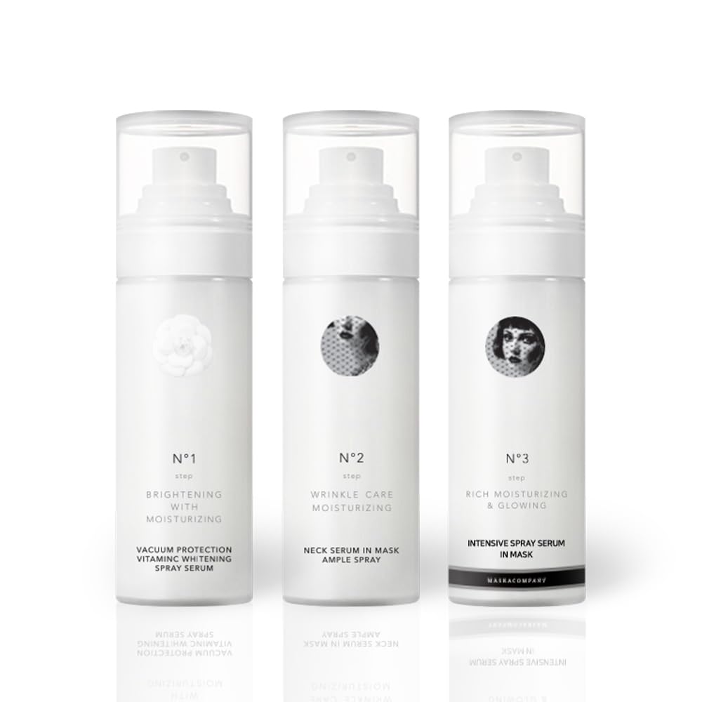 MASKACOMPANY All-Care Spray Serum Set | Tone-Clarity Care Neck Firming Water-Glow Hydration | Daily AM/PM Routine | Korean Skin Care | 3 x 80ml 2.7fl.oz