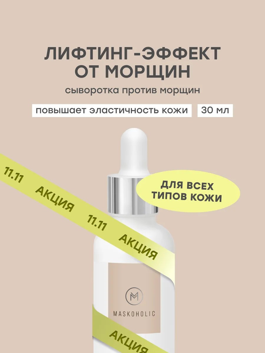 Антивозрастная сыворотка для лица с лифтинг-эффектом от Maskoholic — это эффективное средство для ухода за зрелой и молодой кожей. Формула направлена на борьбу с мимическими морщинами, повышает упругость и эластичность кожи, замедляет процессы старения. Сыворотка подходит для ежедневного применения с 25 лет — как для профилактики, так и для интенсивного антивозрастного ухода.