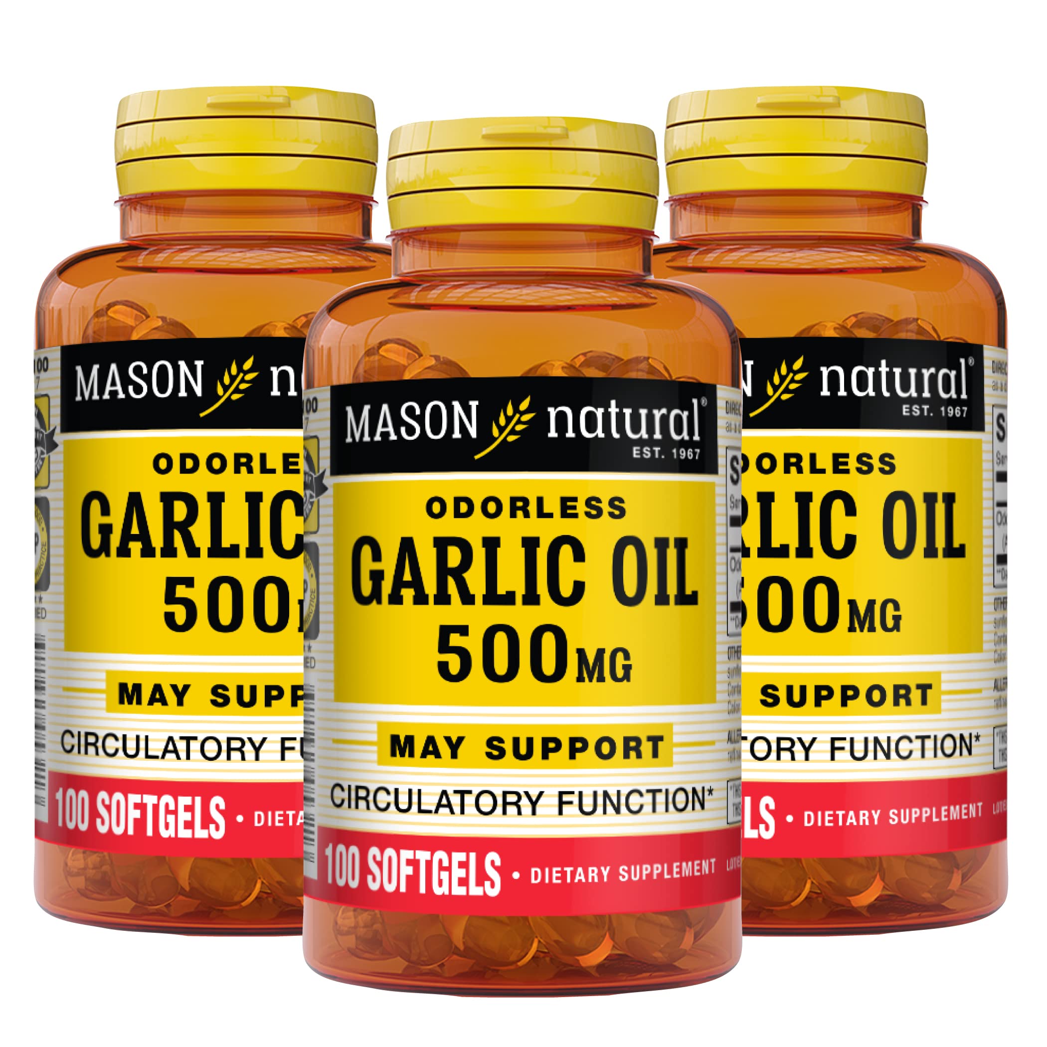 THE BEST VITAMINS FOR OVER 50 YEARS: For more than five decades, Mason Natural has produced quality vitamin supplements under cGMPs (current Good Manufacturing Practices) and adhering to US guidelines. All ingredients and finished goods are subjected to rigorous analytical testing, inspections and quality auditing. NO BAD STUFF: Made with soybean oil. No artificial colors, flavors, sweeteners, preservatives, or common allergens. ANTIOXIDANT SUPPORT: Garlic contains naturally occurring compounds with antioxidant properties that may help protect cells from free radical damage. PURE AND POTENT: Each softgel contains odorless allium sativum, a natural compound traditionally used to support daily health. GARLIC OIL SUPPORT: Mason Natural's Garlic Oil 500 mg softgels provide a concentrated source of garlic extract to help support overall wellness.