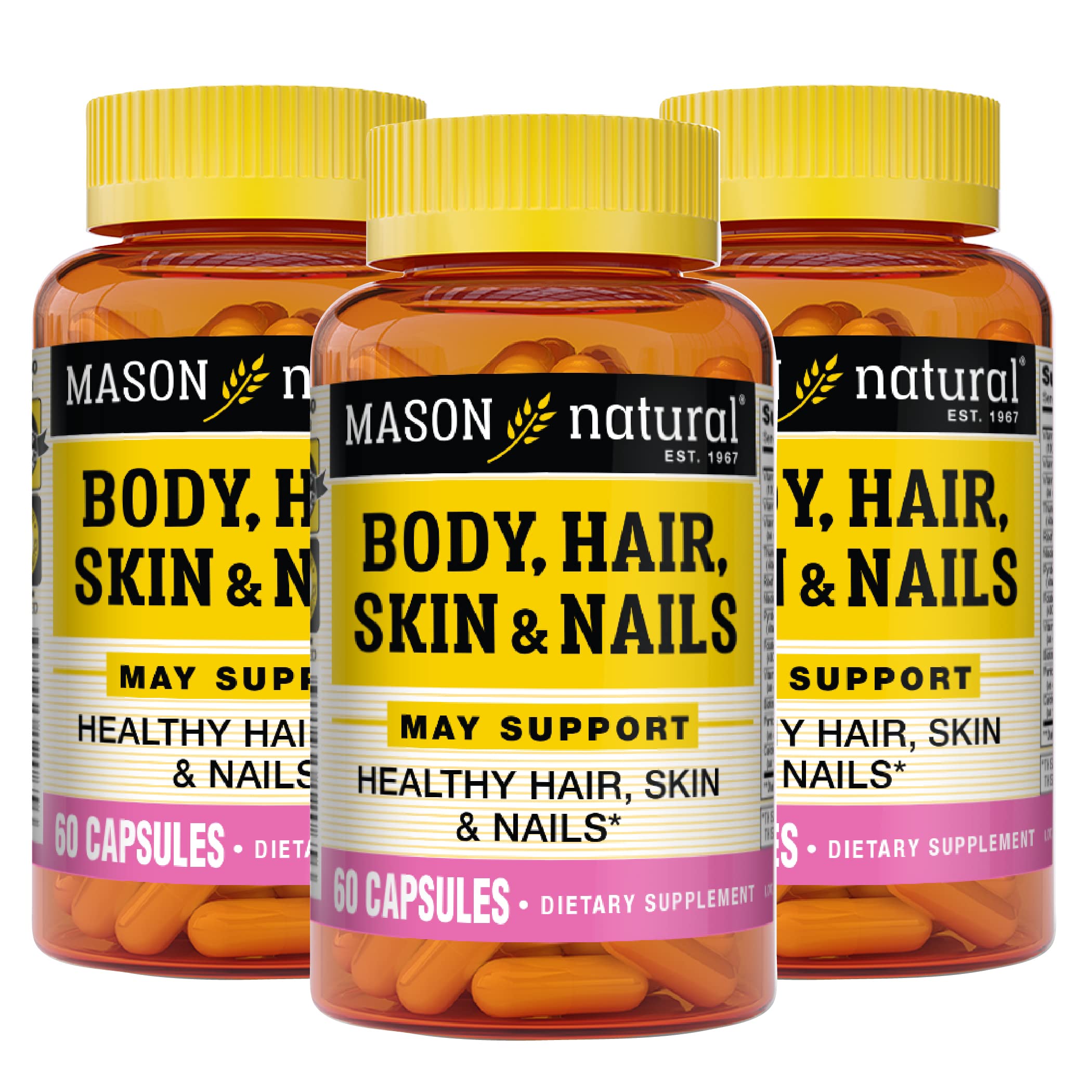 Mason Natural Hair Skin & Nails Premium Beauty Supplement with Biotin & Vitamins A C E and B-Complex 60 Capsules (Pack of 3)