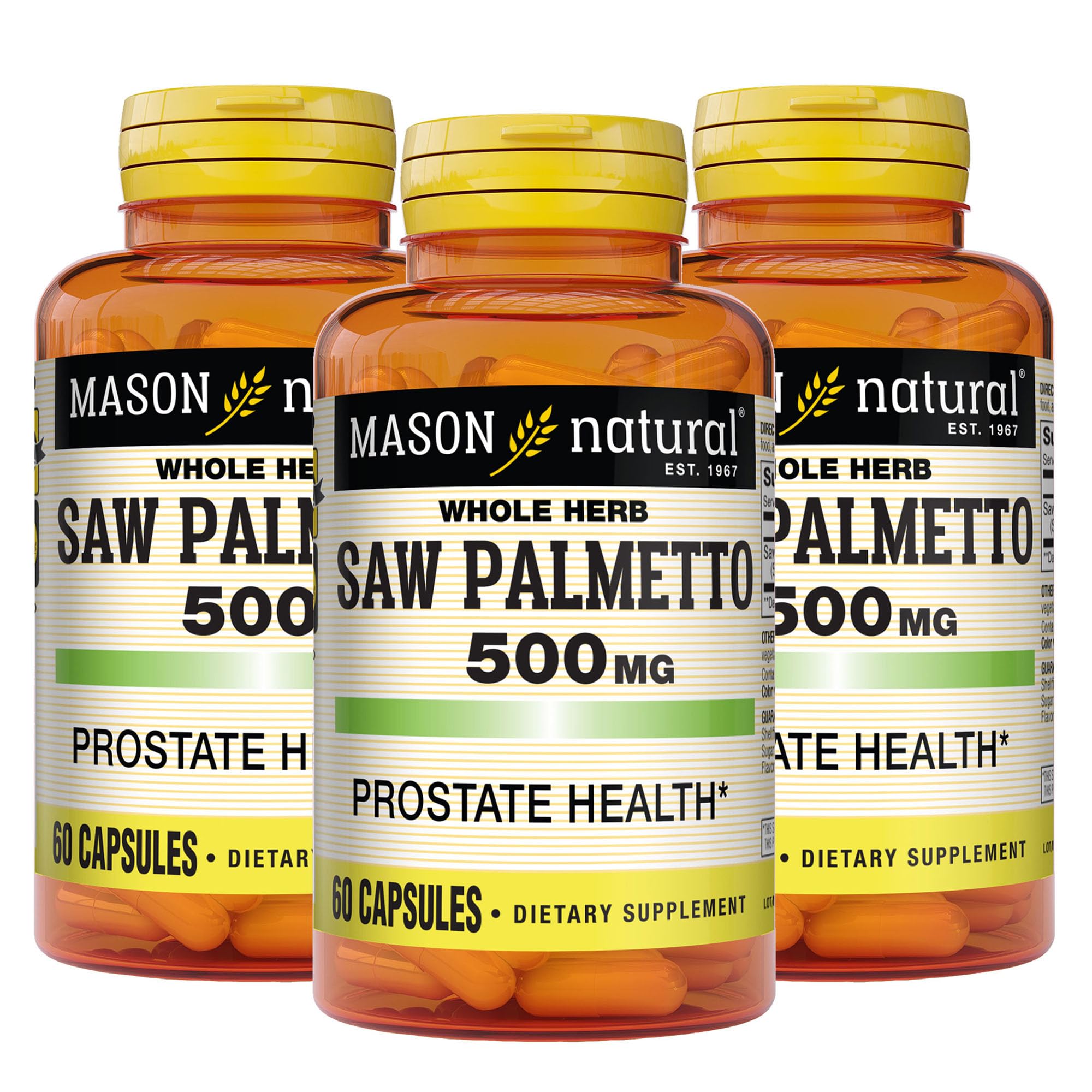 MASON NATURAL Saw Palmetto 500 mg Supports Prostate Health & Urinary Function 60 Capsules Pack of 3