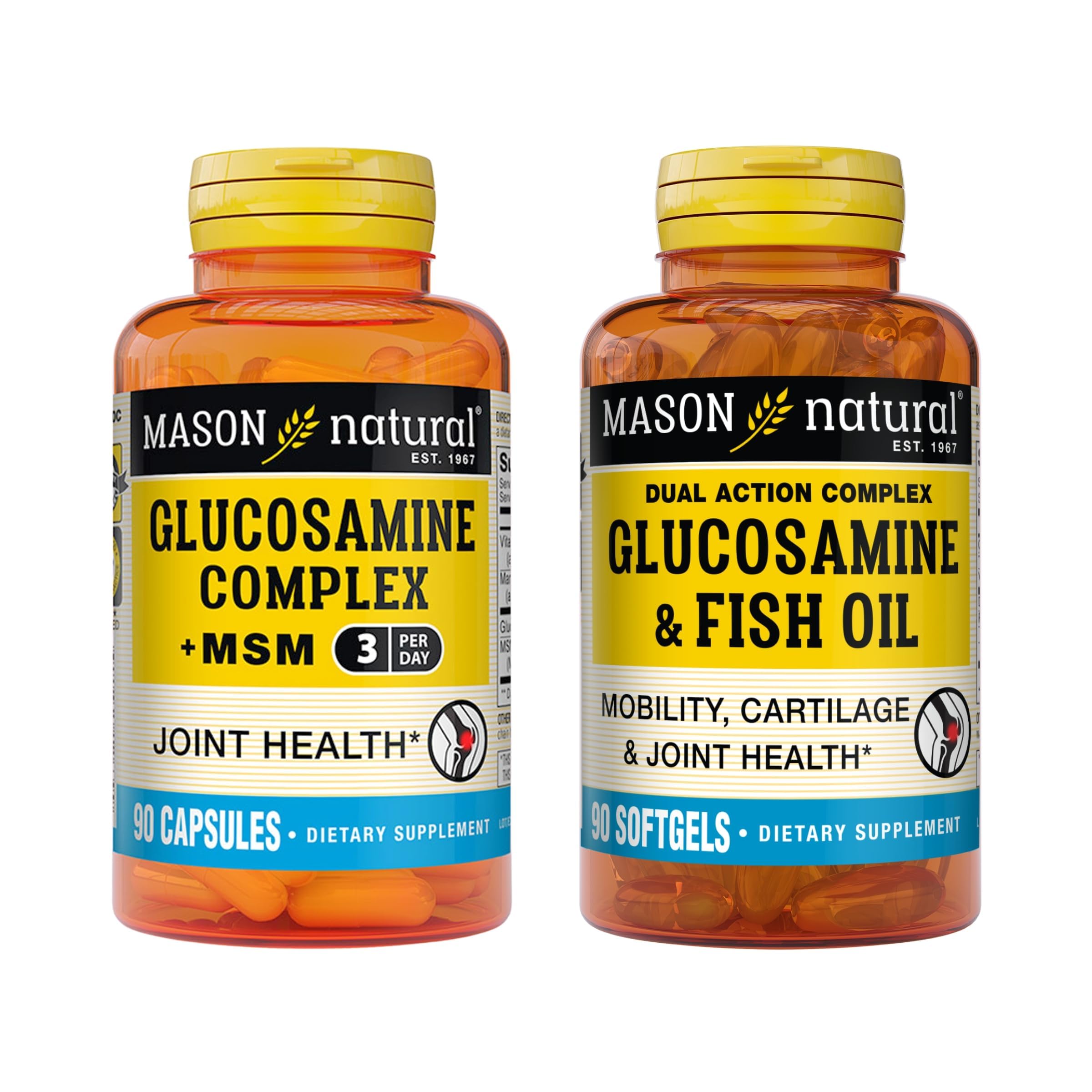 MASON NATURAL Ultimate Joint Support Bundle Glucosamine & Fish Oil + Glucosamine Complex with MSM 90 Softgels + 90 Capsules
