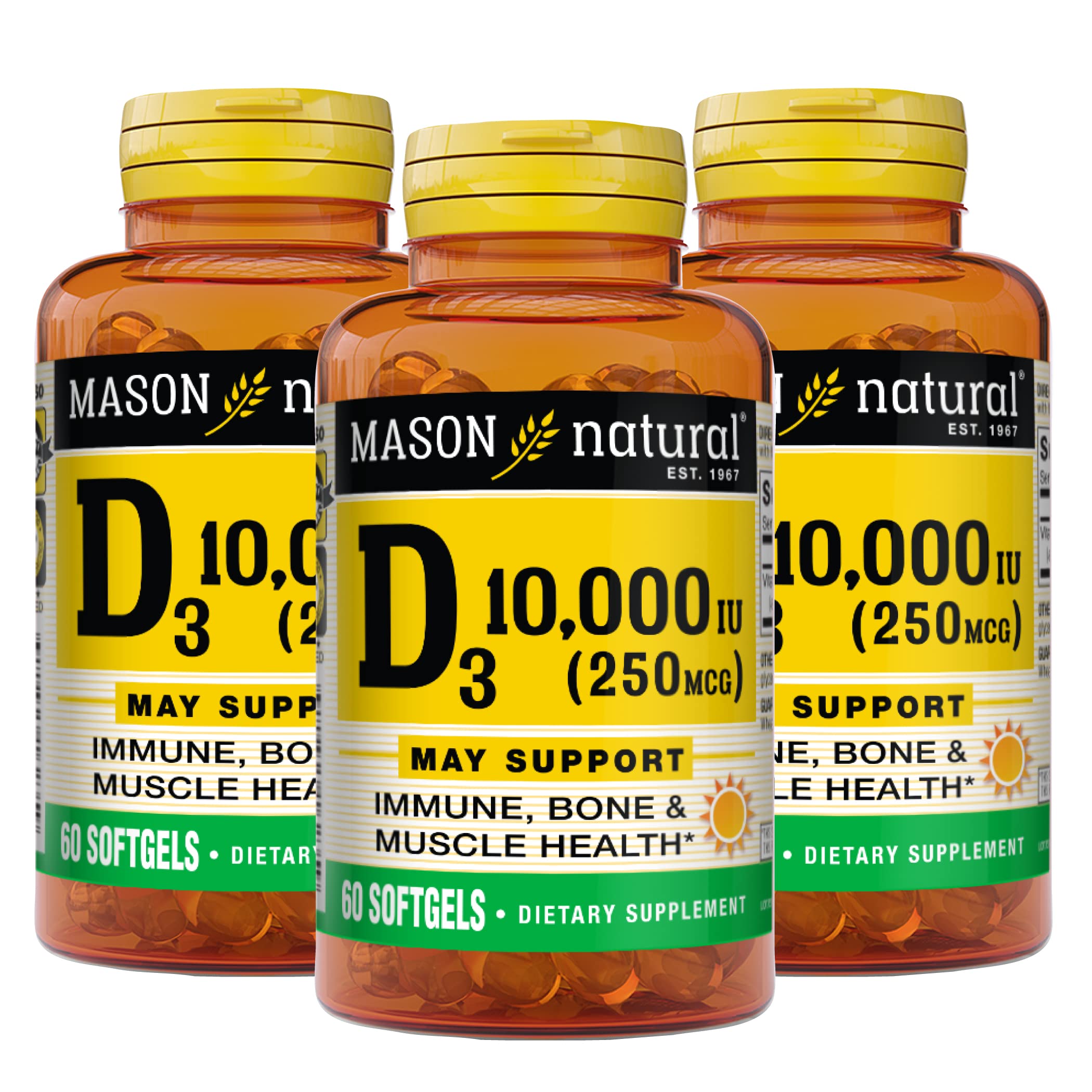 Mason Natural Vitamin D3 250 mcg (10000 IU) Supports Overall Health from Corn Oil 60 Softgels (Pack of 3) Unflavored 60 Count (Pack of 3)