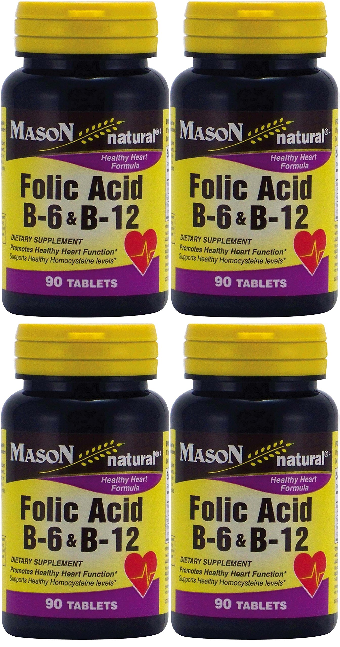 Mason Vitamins Folic Acid B-6 B12 Heart Health Formula 90 Tablets per Bottle Pack of 4 Total 360 Tablets