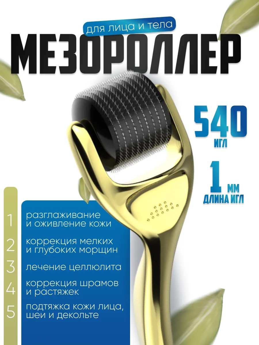 Дермароллер мезороллер микронидлинг 540 игл 1 мм золотистый. Лазерная заточка игл с титановым покрытием. Предназначен для домашнего ухода. Подтягивает кожу, уменьшает видимые признаки старения кожи, морщины, гусиные лапки. стимулирует рост волос и бороды, а также активизирует синтез эластина. Уменьшает следы пост акне, растяжки, целлюлит. При проведении процедуры на коже головы иглы стимулируют рост волос, активизируют кровообращение и способствуют проникновению питательных веществ в волосяные фолликулы. Мужчины пользуются мезороллером для ухода за бородой - иглы стимулируют ее рост, активизируют кровообращение и доставляют необходимое питание вглубь дермы. Это помогает укрепить бороду, улучшить структуру и сделать ее более густой и здоровой. Удобная пластиковая ручка делает массажёр дермароллер более комфортным и легким в использовании. Используйте вместе с ним кремы и маски; уходовые косметические средства, такие как: сыворотка; тонер или гель, обеспечивающий восстановление или увлажнение ног и шеи, лица и проблемной части тела. Степень воздействия регулируется за счет увеличения или уменьшения давления: легкое нажатие корректирует первые возрастные изменения и нацелено на профилактику старения; увеличиваете степень давления — разглаживаются более глубокие мимические морщины. Тонкий точечный прокол обеспечивает мощный лифтинг-эффект.