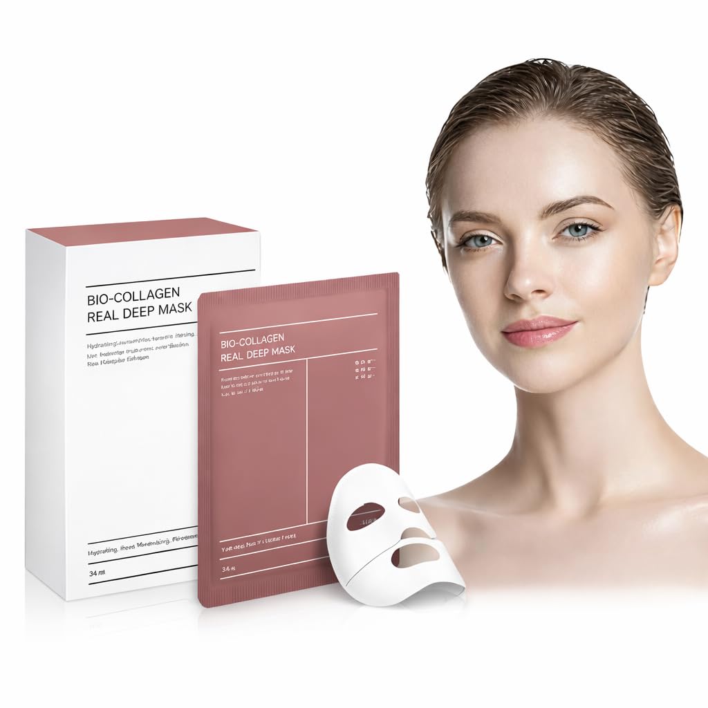 Masque Collagene Visage 5 Pi ces Masque Bio-Collagen Hydratant & Anti- ge Resserre les Pores Raffermit la Peau Soin Cor en pour Tous Types de Peau rose