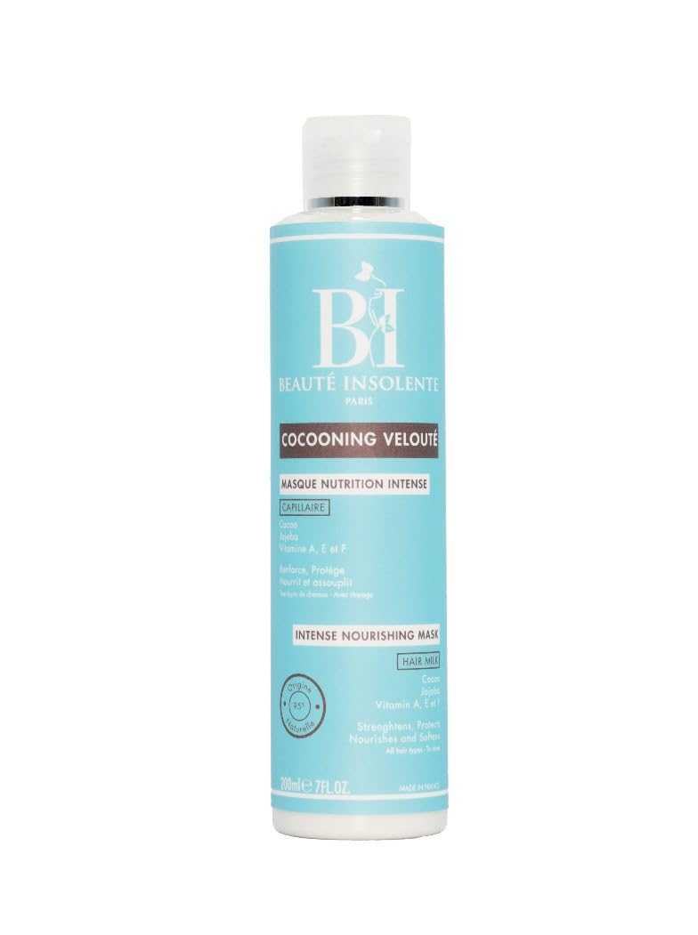 : A 3-in-1 Treatment for Strong, Nourished, and Shiny Hair. Cocoa, Jojoba, and Vitamins A, E, and F strengthen and nourish the core of the hair fiber in very dry, porous, or brittle hair. The Insolent Beauty Intense Nutrition Mask is the ultimate solution to hydrate, strengthen, and enhance your hair. Thanks to its 3-in-1 formula, it can be used as a detangling treatment, deep conditioning mask, or leave-in treatment for customized nourishment tailored to your needs. Directions for Use: Can be used as a detangling treatment, deep conditioning mask, or leave-in treatment for customized nourishment tailored to your needs. P.when('A').execute(function(A) { A.on('a:expander:toggle_description:toggle:collapse', function(data) { window.scroll(0, data.expander. expander[0].offsetTop-100) }) }) Safety Warning: For external use only. See moreVersatile use: Can be used as a quick treatment, intensive mask, or leave-in conditioner. Suitable for all hair types: Ideal for dry, dull, or damaged hair. Adds shine and softness: Leaves hair silky and radiantly healthy. Softens and protects: Deeply nourishes for more supple and resilient hair. Strengthens the hair fiber: Protects against breakage and reinforces the hair structure.Description du produit Un Soin 3-en-1 Pour des Cheveux Forts, Nourris et Éclatants Cacao, Jojoba, et Vitamines A, E et F pour renforcer et nourrir le coeur de la fibre capillaire des cheveux très secs, poreux ou cassants. Le Masque Nutrition Intense Beauté Insolante est la solution ultime pour hydrater, renforcer et sublimer votre chevelure. Grâce à sa formule 3-en-1, il peut être utilisé comme soin démêlant, masque profond ou soin sans rinçage pour une nutrition sur mesure adaptée à vos besoins. Mode d'emploi Peut être utilisé comme soin démêlant, masque profond ou soin sans rinçage pour une nutrition sur mesure adaptée à vos besoins. P.when('A').execute(function(A) { A.on('a:expander:toggle_description:toggle:collapse', function(data) { window.scroll(0, data.expander. expander[0].offsetTop-100) }) }) Avertissement De Sûreté Usage externe uniquement Voir plusUtilisation polyvalente : Peut être utilisé comme soin rapide, masque intense ou soin sans rinçage. Adapté à tous les types de cheveux : Idéal pour les cheveux secs, ternes ou fragilisés. Apporte brillance et douceur : Rend les cheveux soyeux et éclatants de santé. Assouplit et protège : Nourrit en profondeur pour une chevelure plus souple et résistante. Renforce la fibre capillaire : Protège contre la casse et renforce la structure du cheveu.MASQUE NUTRITION INTENSE