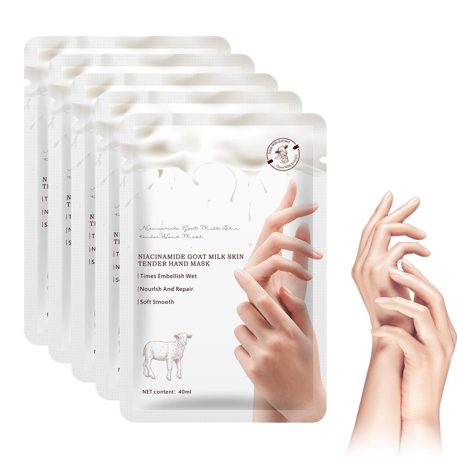 Masques Pour Les Mains à La Chèvre Et à La Niacinamide, 5 Pièces, Hydratation Intense Pour Mains Sèches Et Gercées, Masques Spa Pour Mains Douces Et Lisses, élimine Peaux Mortes