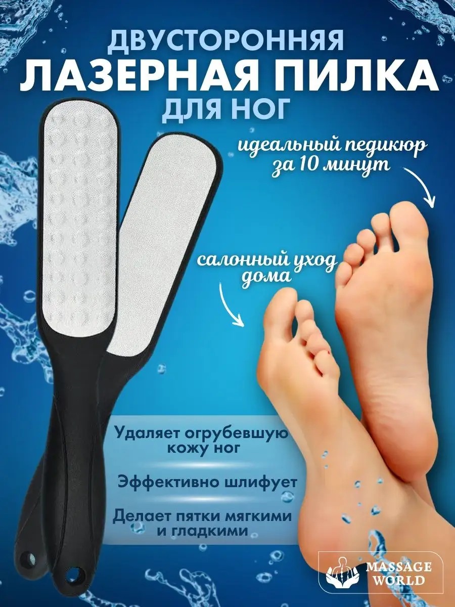 "Мучаетесь с огрубевшей кожей стоп? Скоро лето и Вы хотите одеть свои новенькие босоножки? Тогда Вам просто необходимо приобрести нашу двухстороннюю терку для ног. Ведь каждой девушке или женщине хочется чувствовать себя неотразимой с головы до пяточек. Лазерная профессиональная пилка для ног прекрасно справляется с высохшей кожей пяток и пальцев ног, удаляет мозоли, натоптыши и огрубевшую кожу. На металлической железной поверхности имеются мелкие насечки, которые не травмируют кожный покров, в отличие от электрических аналогов. Ручка не деревянная и не металлическая, а из высокопрочного пластика удобно лежит в руке и не скользит от влаги. Для обработки подошвы ног рекомендуем сначала использовать грубую сторону тёрки, чтобы снять омертвевший слой с пяток, а затем мягкую, чтобы бережно отполировать Ваши гладкие нано пятки. После процедуры пилинга, после избавления от натоптышей и мозолей, для достижение наилучшего эффекта и защиты, на пяточки необходимо нанести любимый увлажняющий крем. Наша щётка для гладких пяток отлично подойдет для использования в ванной или в душе. Педикюрная пемза сделает Ваши нанопяточки, Ваши ноги неотразимыми. Щетка для ухода за пятками, это идеальное решение для тех, у кого катастрофически не хватает времени. Ведь всего за 10 минут Вы с помощью пензы превратите обычные пятки в нанопятки. Идеальный педикюр и салонный уход не выходя из дома. Пилочка для педикюра станет лучшим подарком как для себя, так и маме, бабушке, подруге, жене, коллеге. Зачем ждать? Начинайте готовиться к лету уже сейчас! "