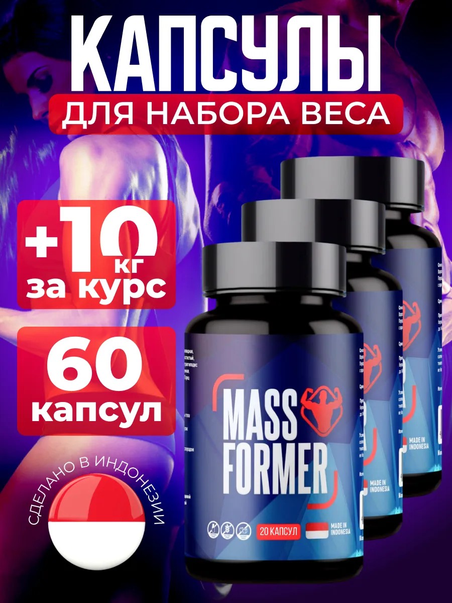 MassFormer - уникальные бады, разработанные специально для мужчин и женщин, желающих набрать мышечную массу и улучшить свое физическое состояние. Препарат представляет сбалансированный комплекс, помогающий взрослому человеку добиться желаемых результатов быстро и эффективно. За курс Mass Former можно прибавить от 7 до 10 кг. Продукт, как протеин, стероиды и анаболики, способен ускорять процесс восстановления после интенсивных тренировок. Благодаря натуральному составу, таблетки обладают мощным иммуномодулирующим эффектом, который помогает укрепить организм и защитить его от различных вредных воздействий. Пищевая добавка снижает чувство усталости и вечного недосыпа, содействуя в налаживании сна и повышая работоспособность. Одним из ключевых компонентов бада является женьшень, известный тонизирующими свойствами и способностью налаживать здоровье и пищеварение. Кордицепс китайский, астрагал, панты, фринозома и другие составляющие обеспечивают комплексное действие. Улучшают циркуляцию крови, аппетит, позволяя получить больше питательных веществ из рациона спортивного питания, способствуют увеличению роста мышц, прибавляют энергию и укрепляют иммунитет, как витамины или минералы. Массформер подойдет для женской и мужской аудитории, увлекающейся спортом и активным образом жизни. Капсулы масс формер в банке для набора веса сделаны в Индонезии, что гарантирует высокое качество и эффективность. Форма выпуска дает возможность применять средство где угодно. Производятся по технологиям популярных kianpi pil и red от Ginseng . Если вы спортсмен или бодибилдер и хотите достичь идеальной фигуры, то наш товар - отличный выбор. Позаботьтесь о красоте своего тела уже сегодня!