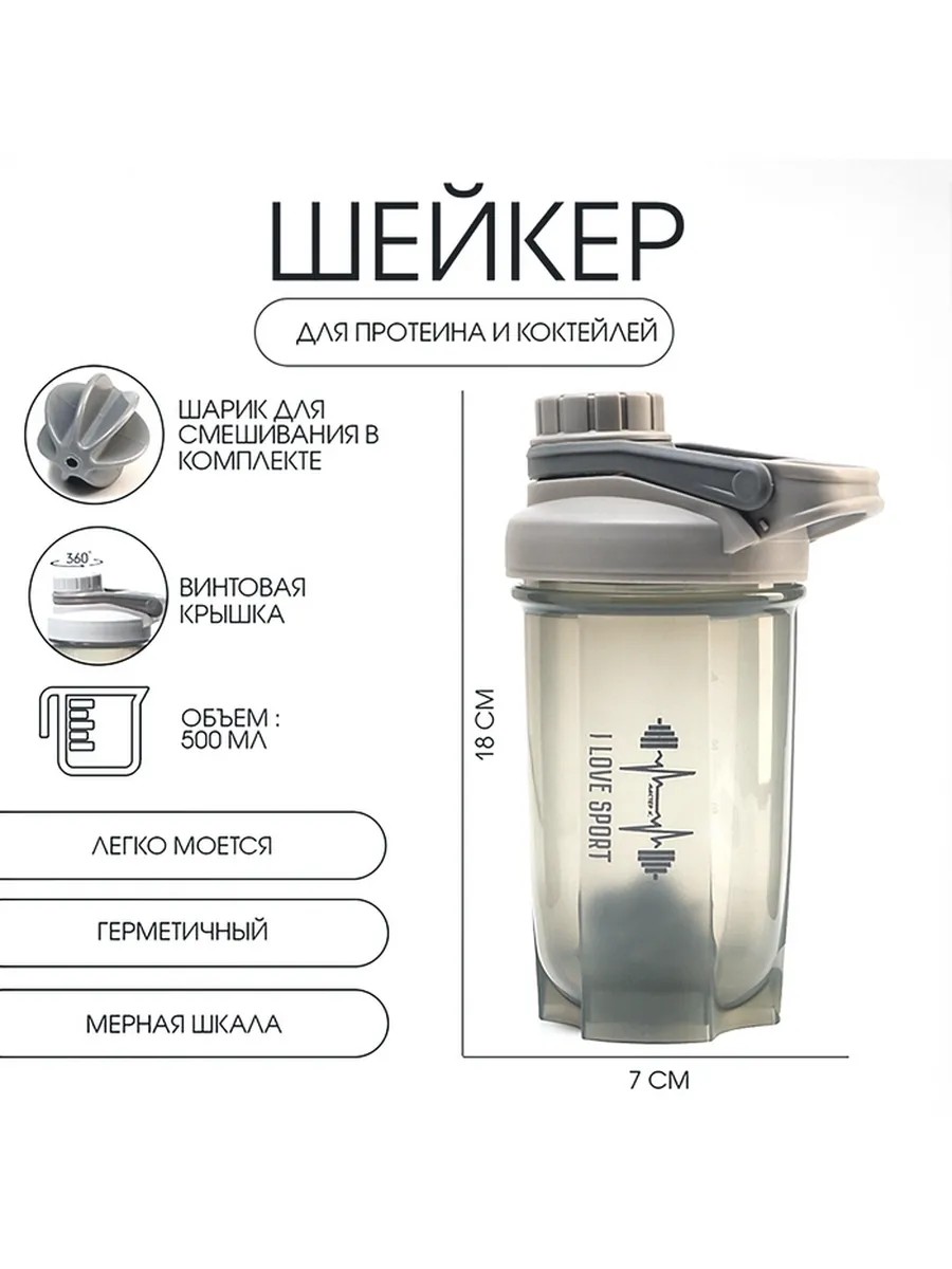 Шейкер "Мастер К." Power"Спортивный протеиновый шейкер "Мастер К.", объемом 500 мл, идеально подходит для приготовления протеиновых коктейлей и других спортивных напитков. Его компактные размеры 18 х 7 см делают его удобным для переноски и использования в любых условиях.Особенности:Объем: 500 мл оптимальный объем для одного приема пищи или напитка.Размеры: 18 x 7 см компактные размеры для удобства переноски.Материал: Пищевой пластик безопасный и прочный материал, устойчивый к ударам и царапинам.Спортивный дизайн: Современный и стильный дизайн, подчеркивающий вашу активность и стремление к здоровому образу жизни.Преимущества:Легкость и удобство использованияПрочный и долговечный материалКомпактные размеры, подходящие для переноски в сумке или рюкзакеПодходит для многократного использованияШейкер для коктейлей "Мастер К. Power" можно использовать не только для протеина, но и для других напитков, таких как соки, спортивные напитки или смузи.