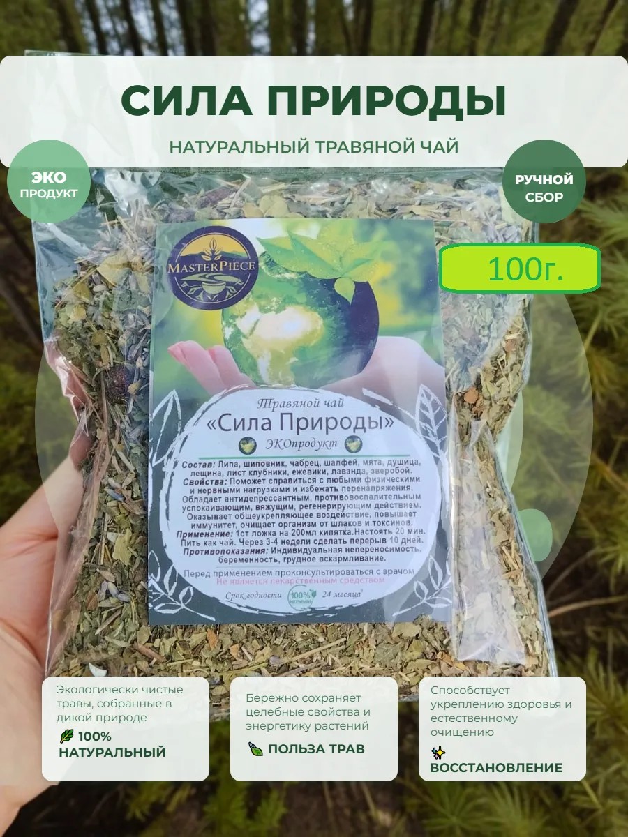 Представьте себе: уютный вечер, приятный аромат трав и чашка ароматного чая "Сила Природы" от MasterPiece в ваших руках. Этот травяной чай — настоящий кладезь полезных свойств, собранных из самых душистых и ароматных трав. В его составе — липа, шиповник, чабрец, шалфей, мята, душица, лещина, лист клубники, ежевики, лаванда и зверобой. Каждый глоток наполнит вас бодростью и энергией, а приятный вкус и аромат подарят истинное наслаждение. Чай упакован в индивидуальную упаковку "БОПП", что сохраняет его свежесть и аромат. "Сила Природы" — это идеальный выбор для тех, кто ценит натуральные продукты и заботится о своем здоровье. Побалуйте себя чашечкой этого чудесного чая и почувствуйте силу природы!Свойства: Поможет справиться с любыми физическими и нервными нагрузками и избежать перенапряжения. Обладает антидепрессантным, противовоспалительным, успокаивающим, вяжущим, регенерирующим действием. Оказывает общеукрепляющее воздействие, повышает иммунитет, очищает организм от шлаков и токсинов, помогает при гриппе и простуде.
