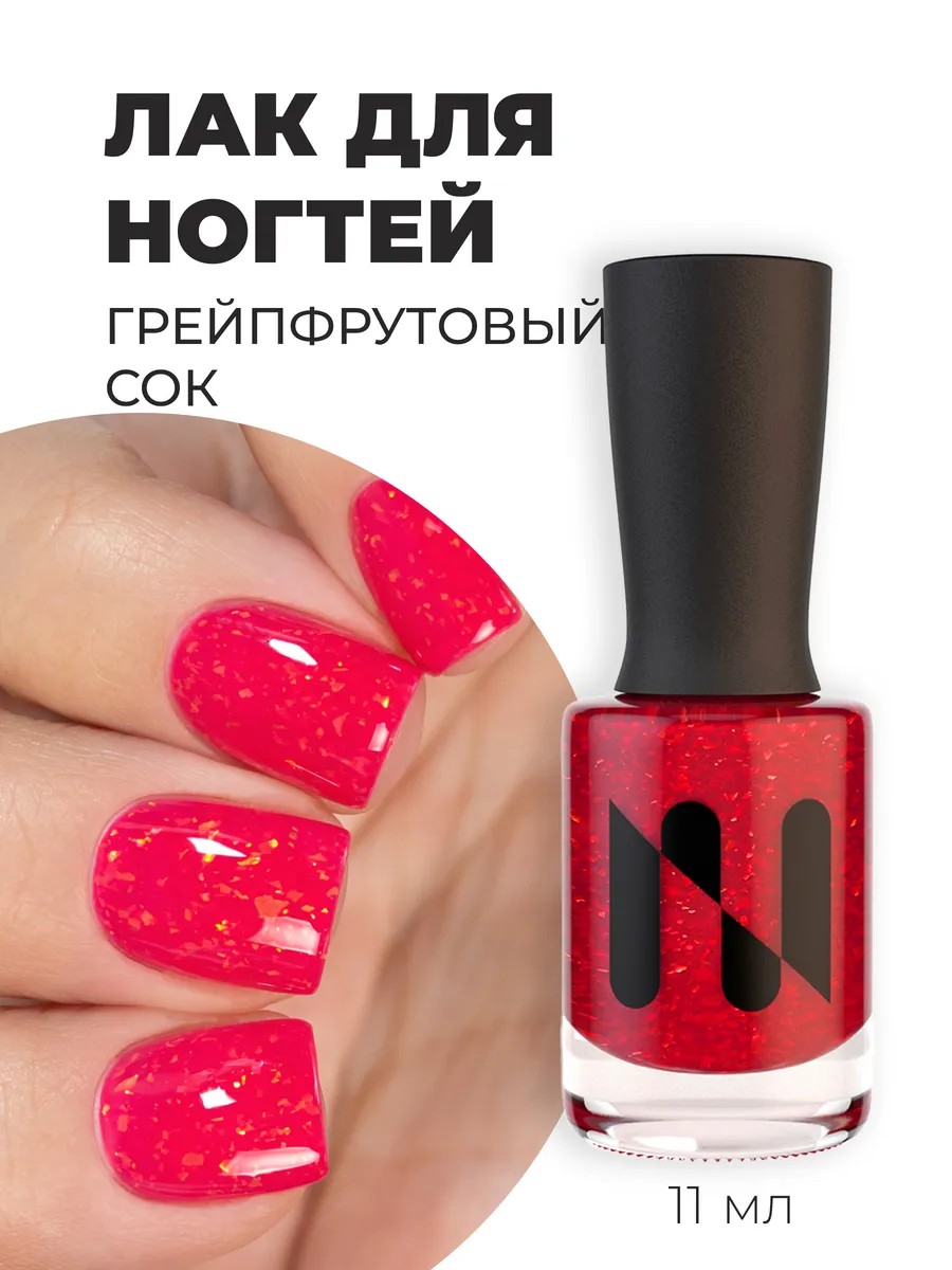 Masura Grapefruit Juice Nail Polish, 11 ml - red-pink with multichrome mica. The polish has a convenient wide rounded brush and a removable cap, which makes it possible to use it both at home and in a beauty salon. Shine and color last up to 10 days; to increase the durability of the coating, we always recommend using a base coat. The nail polish dries in the air, no lamp required. Can be removed with nail polish remover. How to use: 1. Degrease the nail plate. 2. Apply the base coat; it will protect and strengthen the nails. Dry. 3. Apply the first thin coat of polish. Dry. 4. Apply a second coat of polish; you can make it denser. Dry. 5. Cover with a top coat. It will fix the polish, prolong wear, and add extra shine to the coating. A Japanese manicure is an excellent long-lasting base for nail polish. Afterward, your nails will not only be healthy and well-groomed, but also ready for colored polish. The polish will adhere perfectly, adding a bright and stylish accent to your look. Color rendering may vary, as the photos and videos were taken with professional equipment and under optimal lighting. The color in the photos and videos was applied in two coats and sealed with a top coat. Without a top coat, the polish can have a textured or matte finish.