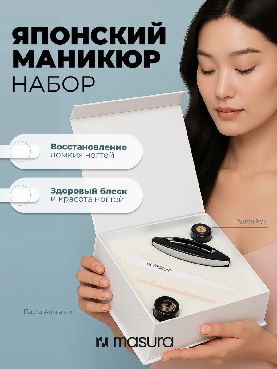 Японский маникюр Masura в подарочной коробке – это эффективный набор для лечения, ухода и восстановления ногтей. Набор для маникюра включает в себя все необходимые инструменты и средства для проведения процедуры японского маникюра, обеспечивая вашим ногтям нежный уход и здоровый вид.