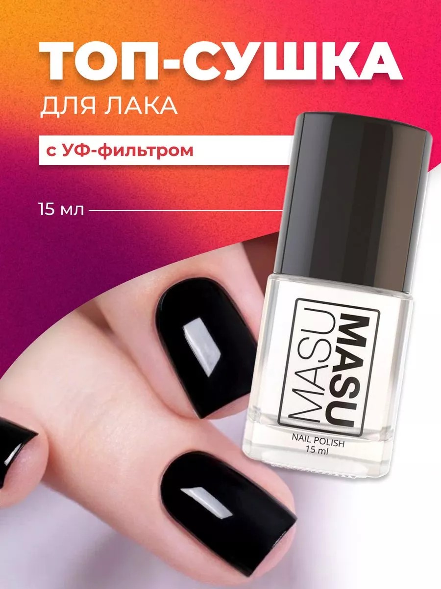 Топ сушка для ногтей MASU MASU с УФ фильтром – сохнет на воздухе без лампы (обычный), стойкий, быстро снимается жидкостью для снятия лака, имеет глянцевый финиш.