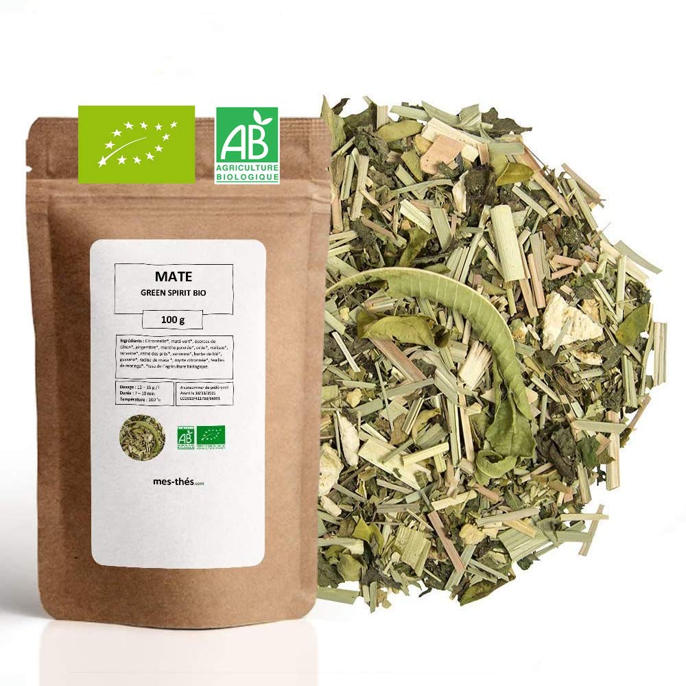 Maté Bio Green spirit - 100g (40 tasses) - Riche en vitamines et Antioxydants - 100 Agriculture Biologique - Mes-Thés