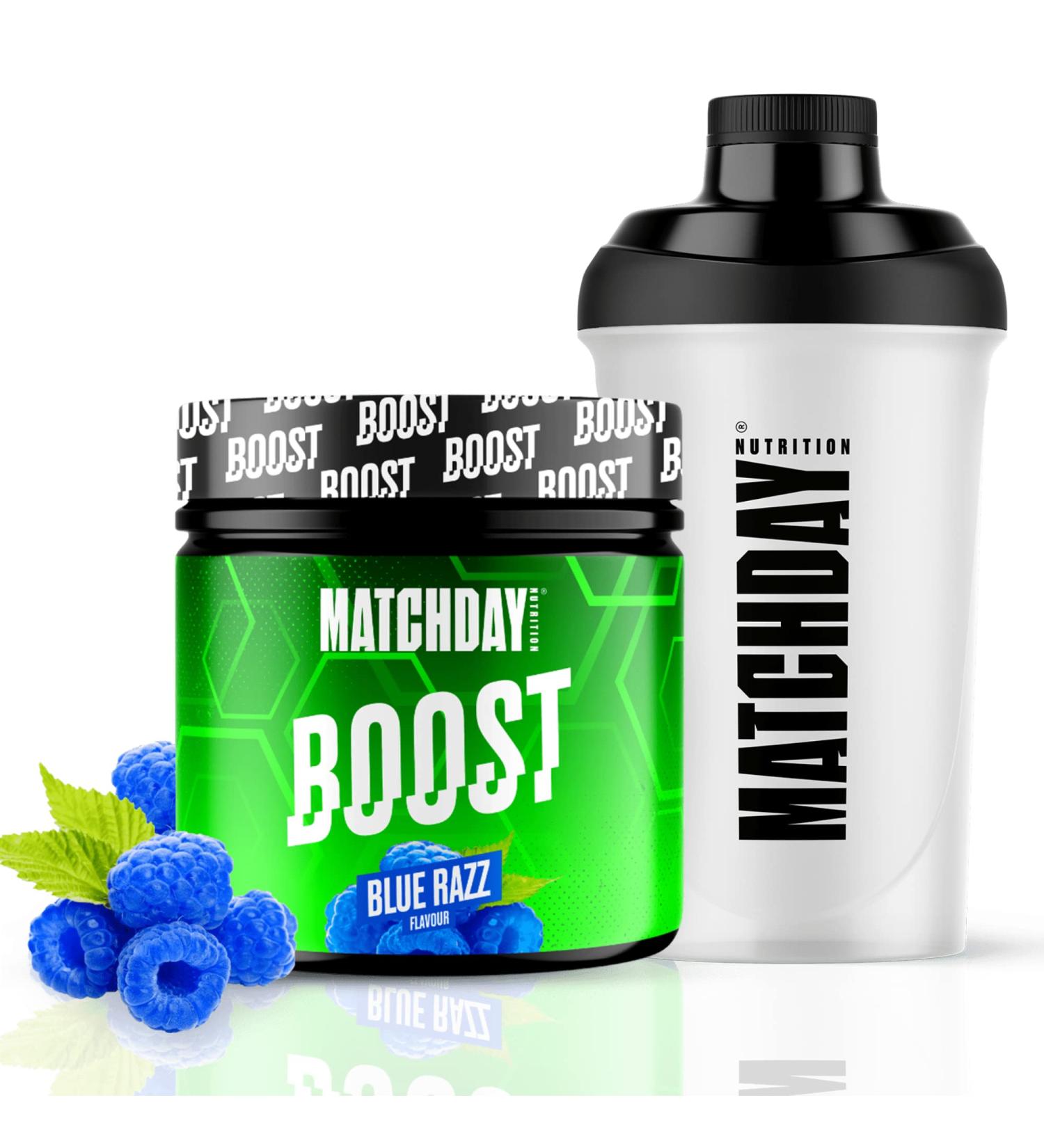 MATCHDAY NUTRITION BOOST Speziell für Fußballer I Starterpack Blue Razz Mit Shaker I 90 Minuten Vollgas I ATP Booster mit Aminosäuren & Kohlenhydraten I Mehr Schnelligkeit & Ausdauer I 20 Portionen