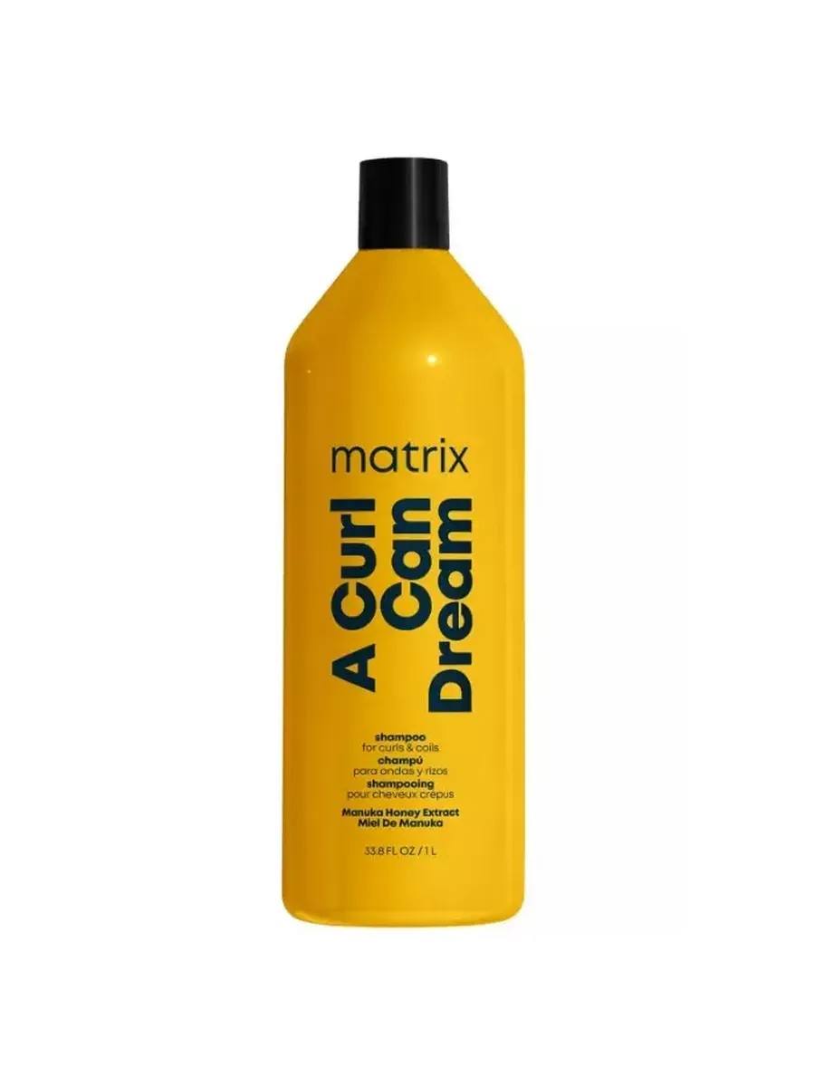 Matrix A Curl Can Dream professional shampoo for curly and frizzy hair with Manuka honey extract intensively cleanses, removes buildup, and moisturizes and nourishes porous curly hair, helping to create beautiful, bouncy curls. Contains no silicones or mineral oils. The fragrance opens with notes of rose, peony, sea salt, lily of the valley, and jasmine. Apply the desired amount of shampoo to the scalp, lather, and rinse thoroughly along the lengths and ends. Rinse with water. Then apply the A Curl Can Dream mask and light hold gel.