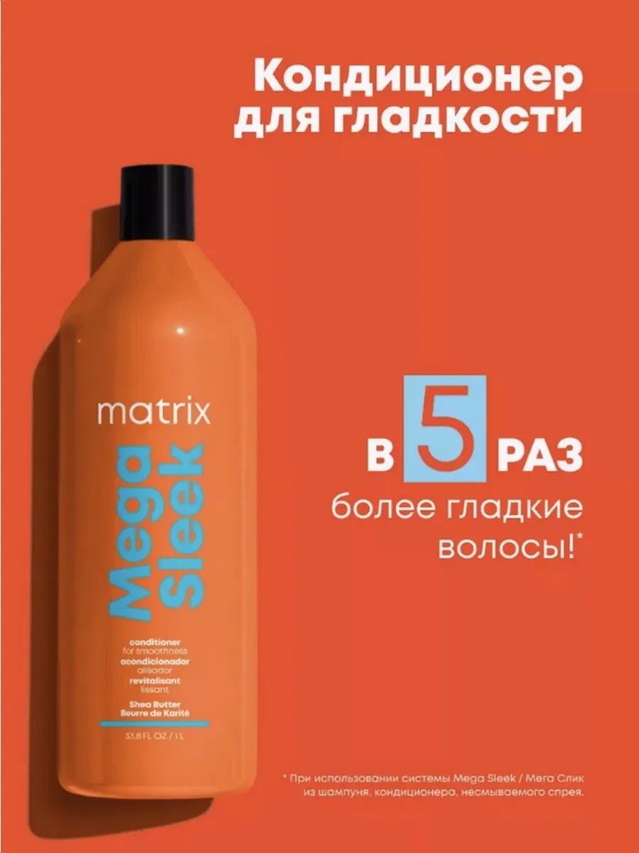 Кондиционер Mega Sleek с маслом ши укрощает непослушные волосы, защищает от влажности, придаёт волосам гладкость. При использовании системы из шампуня, кондиционера и несмываемого спрея для термозащиты. Способ применения: нанести на влажные волосы после использования шампуня Mega Sleek. Смыть водой. При попадании в глаза немедленно промыть водой.
