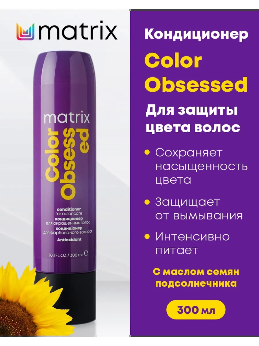 MATRIX Color Obsessed Conditioner with antioxidants protects against fading and maintains the richness of color-treated hair. It gives porous hair long-lasting smoothness, color richness, and shine. After using Color Obsessed Shampoo, apply to damp hair. Massage in. Rinse with water. If in eyes, rinse immediately with water.