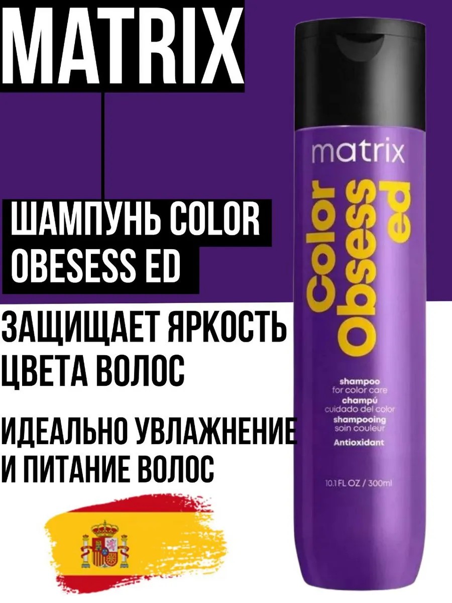 Color Obsessed Professional Shampoo (Matrix Color Obsessed) with antioxidants for post-color care. It gently cleanses and effectively protects color from fading for up to 32 washes, maintaining the richness of color-treated hair and adding long-lasting smoothness and shine to porous hair. The antioxidant-rich formula neutralizes the harmful effects of aggressive external factors, preventing damage to the structure and loss of color depth. The caring ingredients of this cosmetic product soften and moisturize the hair fiber, adding shine. This pleasantly scented shampoo is suitable for both women and men and provides a pleasant shampooing experience. Directions: Apply to damp hair. Lather. Rinse with water. If in eyes, rinse immediately with water. For maximum results and long-lasting color vibrancy, it is recommended to use this shampoo with the Color Obsessed conditioner.