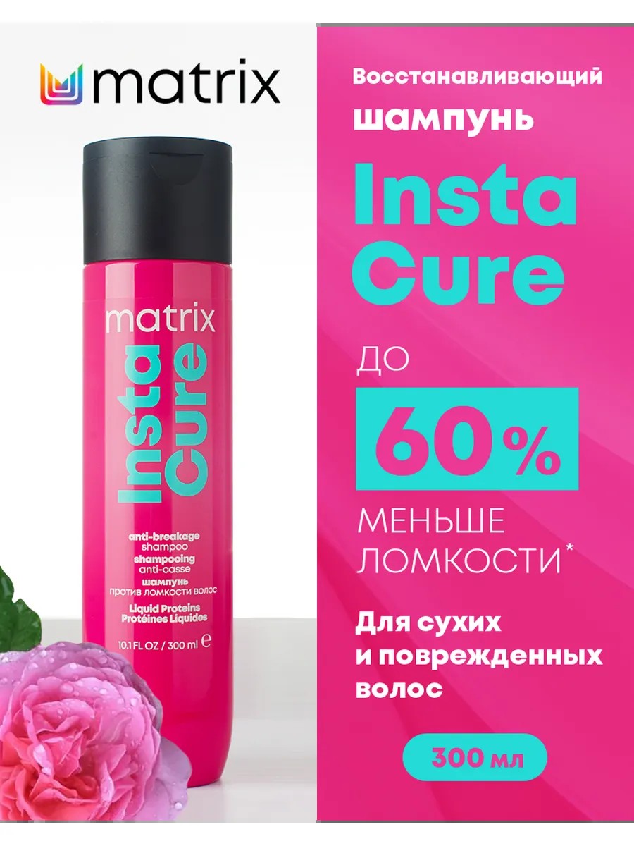 Шампунь MATRIX Instacure против ломкости, обогащенный жидким протеином, помогает восстановить силу, уменьшить ломкость сухих и поврежденных волос. Система из шампуня, кондиционера, спрея против ломкости и пористости заполняет пористость, создавая ровную и гладкую поверхность волоса. Аромат гаммы раскрывается нотами свежего имбиря, зеленого чая, лемонграсса, фрезии, майской розы, кедра. Упаковка линейки Total Results изготовлена минимум на 95% из переработанного пластика за исключением крышки. Профессиональный бренд Matrix создан парикмахером. Основная идея профессиональных уходов Matrix - уход за волосами не должен быть сложным. Наши профессиональные гаммы созданы, чтобы в комплексе решать проблемы любых типов и видов волос. Легкие в применении, эффективные в действии.