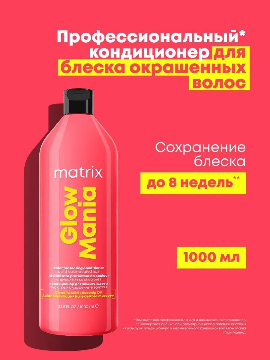 | Полное наименование товара | Профессиональный кондиционер Matrix Glow Mania для блеска окрашенных волос 1000 мл |