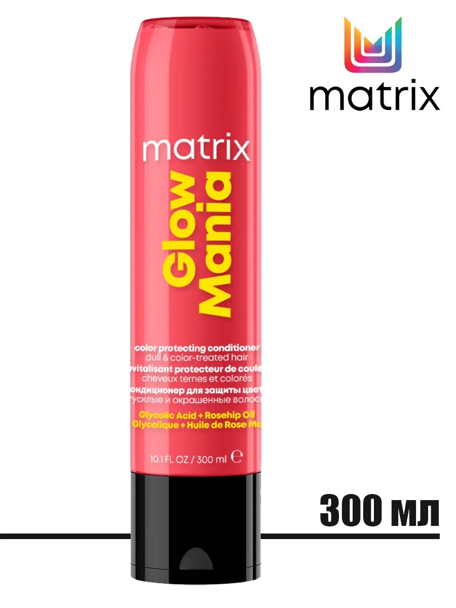 Профессиональный кондиционер Matrix Glow Mania Глоу Маниа, объемом 300 мл, станет незаменимым помощником для тех, кто стремится сохранить яркость и сияние окрашенных волос. Этот кондиционер разработан специально для защиты цвета и придания волосам длительного блеска. Формула, обогащенная маслом, бережно ухаживает за волосами, возвращая им гладкость и шелковистость. Glow Mania эффективно разглаживает кутикулу волоса, облегчая расчесывание и предотвращая появление спутанности. Регулярное применение кондиционера поможет сохранить насыщенность цвета и предотвратить его вымывание, делая ваши волосы более живыми и сияющими. Glow Mania – это идеальное решение для тех, кто хочет сохранить красоту и здоровье своих окрашенных волос, придать им блеск и сияние, а также облегчить расчесывание. Профессиональный кондиционер Matrix Glow Mania (Глоу Маниа), 300 мл, для защиты цвета и длительного сияния волос - подходит для окрашенных и тусклых волос, возвращает им блеск и гладкость, обеспечивает легкое расчесывание. Кондиционер аккуратно распутывает волосы, сохраняя сияние цвета изнутри. Под воздействием стресс-факторов (окрашивания, частых укладок, интенсивного расчесывания, использования термоинструментов) волосы могут терять природный блеск - это связано с тем, что их поврежденная поверхность перестает отражать свет. За глянцевый блеск, идущий изнутри, отвечает гликолевая кислота, обладающая самой маленькой молекулой из всех АНА-кислот и легко проникающая в структуру волоса. А длительное сияние снаружи поддерживает масло шиповника (отличный источник витамина С), которое обладает ламинирующим эффектом - закрывает поврежденные чешуйки и обеспечивает их плотное прилегание друг к другу. Волосы снова начинают отражать свет и сиять уверенно и роскошно. Сохранить длительный блеск, защитить цвет и обеспечить уход для окрашенных волос поможет применение всех продуктов гаммы Glow Mania