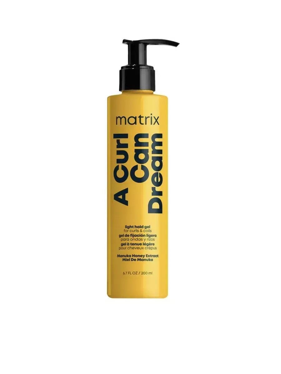 P Matrix Total Results A Curl Can Dream Shampoo Light Hold Gel for Curly Hair 200 ml. Professional gel A Curl Can Dream with Manuka honey extract provides light hold, defines and shapes curls without sticking. Free of silicones, parabens, and mineral oils. The fragrance opens with notes of rose, peony, sea salt, lily of the valley, and jasmine. Application: After using the shampoo and mask A Curl Can Dream, apply the required amount of light hold gel depending on the thickness and density of your hair. Less for fine hair. More for thick hair. More product can enhance hold. The gel can be applied before blow-drying.