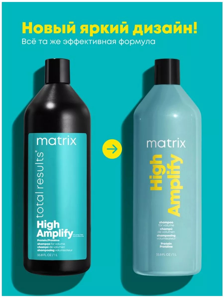 The weightless formula of High Amplify thickening shampoo, with strengthening proteins and no silicones, restores the structure of fine, limp hair, adding volume. Hair is lifted at the roots and retains its volume for a long time. This professional shampoo is suitable for girls, women, and men. It has a pleasant perfumed aroma and a gentle cleansing effect on the scalp. This cosmetic product provides long-lasting cleanliness and lightness at the roots, even on very oily, long, and straight hair. Effective for both dry and weakened hair, as well as fine, oily hair. Suitable for frequent daily use (everyday care). Directions: Apply to damp hair. Lather. Rinse with water. For additional thickening, we recommend using the High Amplify conditioner and Matrix spray. Up to 35 percent more volume when using the system of shampoo, conditioner, and root volume spray.
