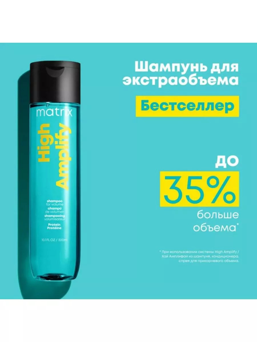 Шампунь для тонких волос Total Results High Amplify Protein Shampoo от MATRIX, основанной на протеиновой формуле, с содержанием катионовых полимеров и пантенола.Невесомая формула уплотняющего шампуня High Amplify (Хай Амплифай) с укрепляющими протеинами и без силиконов восстанавливает структуру тонких, мягких волос, придавая им объём. Волосы приподнимаются у корней и надолго сохраняют пышность. Профессиональный шампунь подходит для девушек, женщин и мужчин,обладает приятным парфюмированным ароматом и мягким очищающим действием для кожи головы. Косметическое средство обеспечивает длительную чистоту и легкость у корней даже на очень жирных, длинных и прямых волосах. Эффективен как для сухих и ослабленных, так и для тонких, склонных к жирности волос. Подходит для частого ежедневного использования (ухода на каждый день). Способ применения: нанести на влажные волосы. Вспенить. Смыть водой. Для дополнительного уплотнения рекомендуется использовать кондиционер и спрей Матрикс High Amplify. До 35 процентов больше объема при использовании системы из шампуня, кондиционера и спрея для прикорневого объема.
