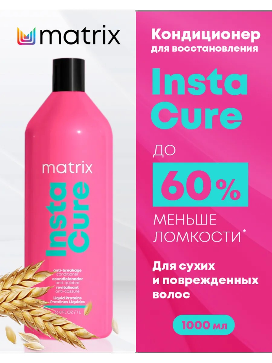 Matrix Instacure professional conditioner with liquid protein helps restore strength, reduce breakage, and nourish and smooth dry and damaged hair.