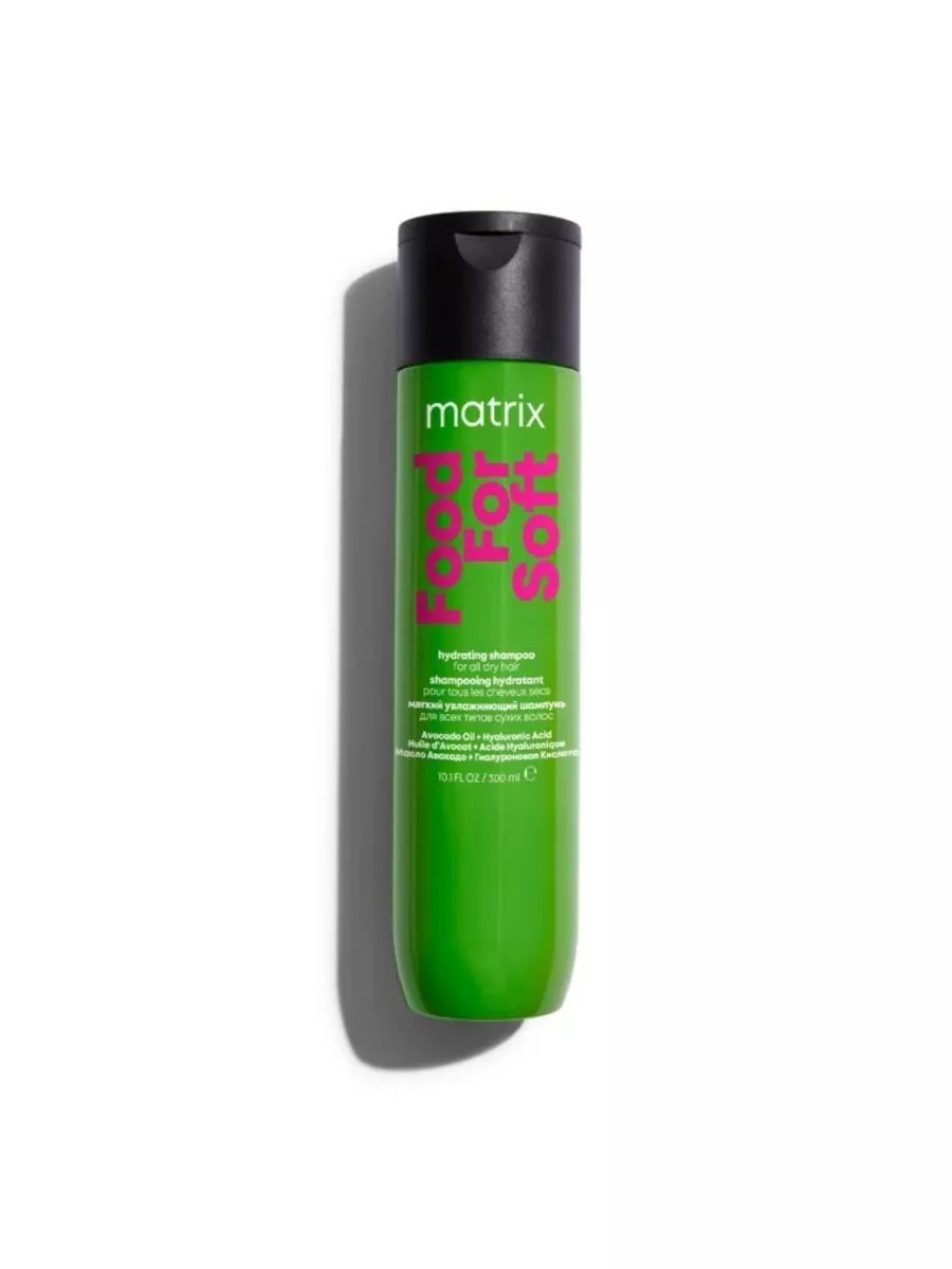 Эффективность: Профессиональный шампунь Matrix Food For Soft предназначен для ежедневного домашнего и салонного ухода за сухими волосами. Обеспечивает бережное и качественное очищение волос и кожи головы. Ухаживающий комплекс с авокадовым маслом и гиалуроном оказывает питательное и интенсивное увлажняющее действие, помогает сохранить мягкость и красоту волос, обеспечивает более легкое расчесывание. Шампунь подходит для частого использования. Увлажняющая система Food For Soft делает волосы в 7 раз мягче![1]