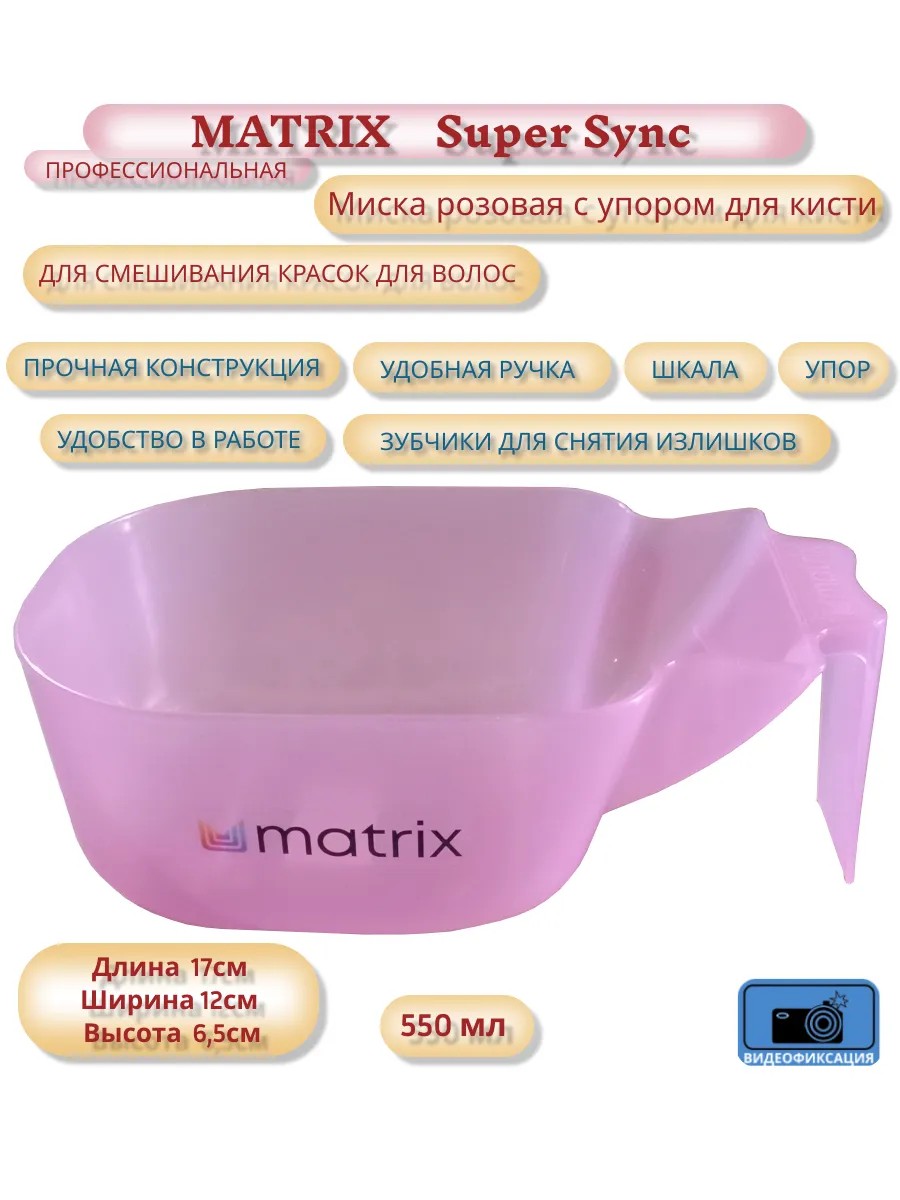ВИДЕОФИКСАЦИЯ СБОРКИ ЗАКАЗА! Профессиональная миска MATRIX для смешивания краски для волос. Выполнена из высококачественного, прочного, химически инертного пластика, не вступает в реакцию с краской и не меняет цвет даже после продолжительного использования. Красивый дизайн. Оснащена удобной ручкой, мерными делениями для определения объема краски для волос, специальными зубчиками для снятия лишней краски с кисти и упором. Идеально подходит как для салонного, так и для домашнего применения. Её можно использовать не только для смешивания красящих веществ, но и для приготовления различных масок, составов для бьюти процедур. Легко отмывается от остатков смеси, проста в эксплуатации.