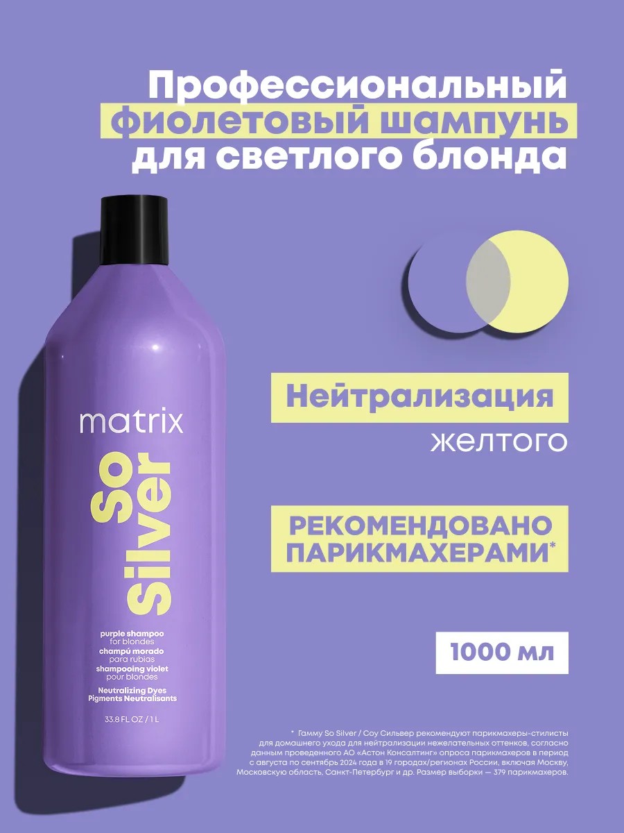 MATRIX Фиолетовый шампунь So Silver для нейтрализации желтизны, 1л
