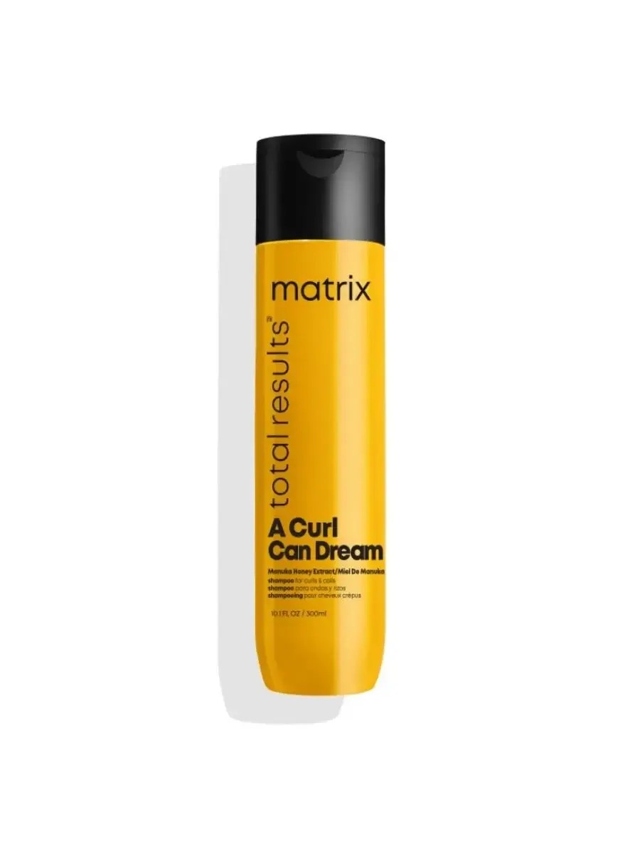 Matrix A Curl Can Dream professional shampoo for curly and wavy hair with Manuka honey extract intensively cleanses, removes buildup, and moisturizes and nourishes porous curly hair, helping to create beautiful, bouncy curls. Free of silicones and mineral oils. The scent opens with notes of rose, peony, sea salt, lily of the valley, and jasmine.